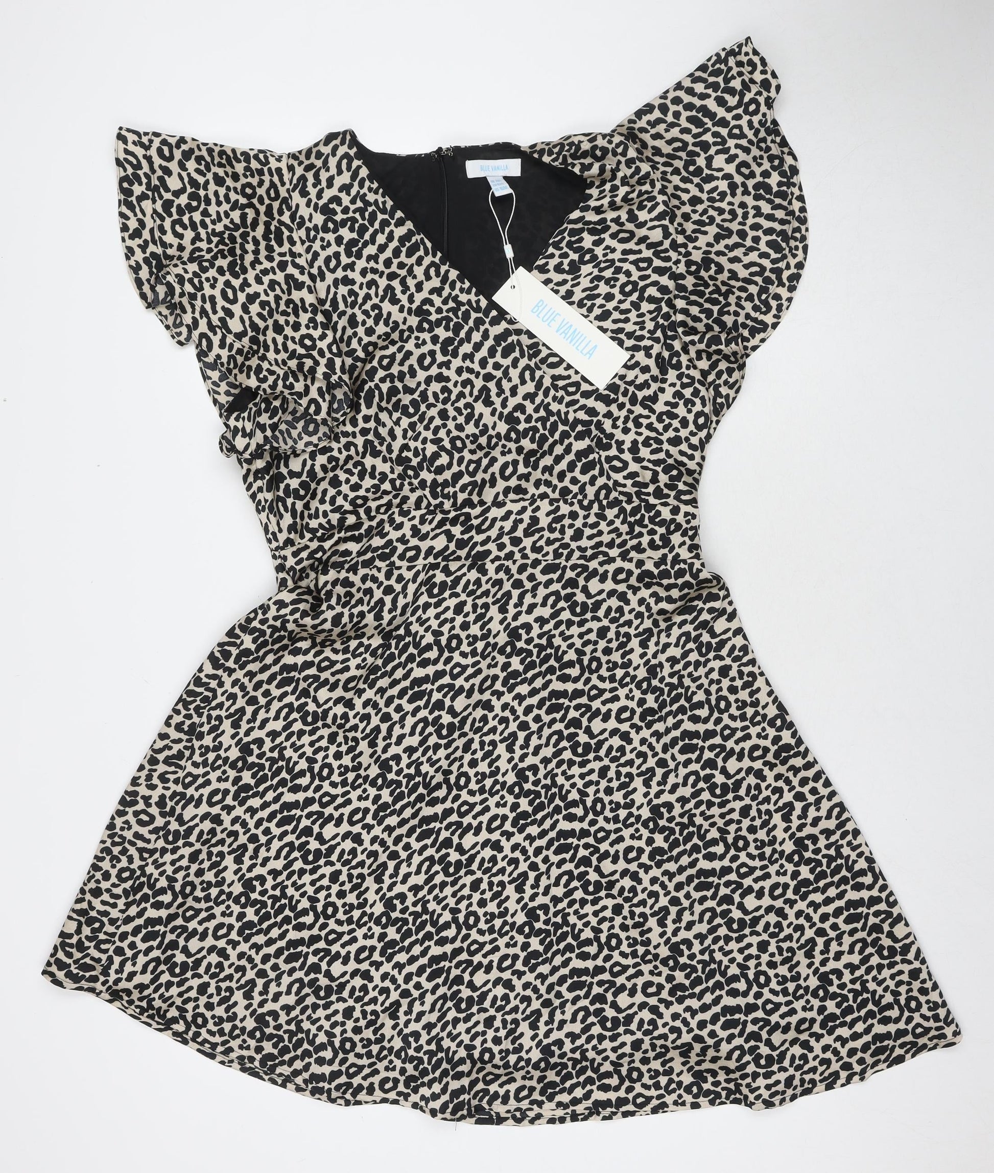 Blue Vanilla Womens Beige Animal Print Polyester Fit & Flare Size 14 V-Neck Zip