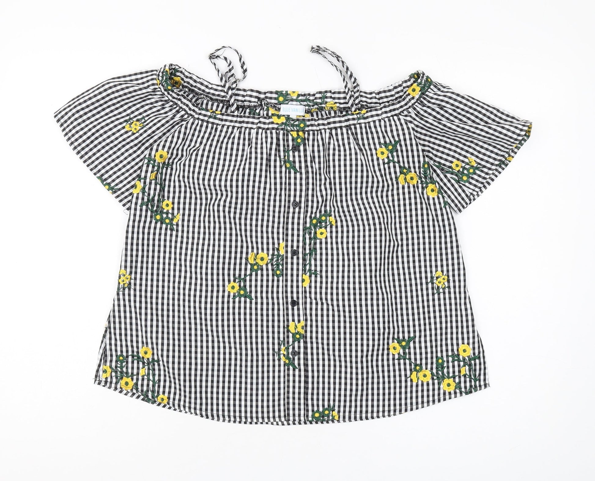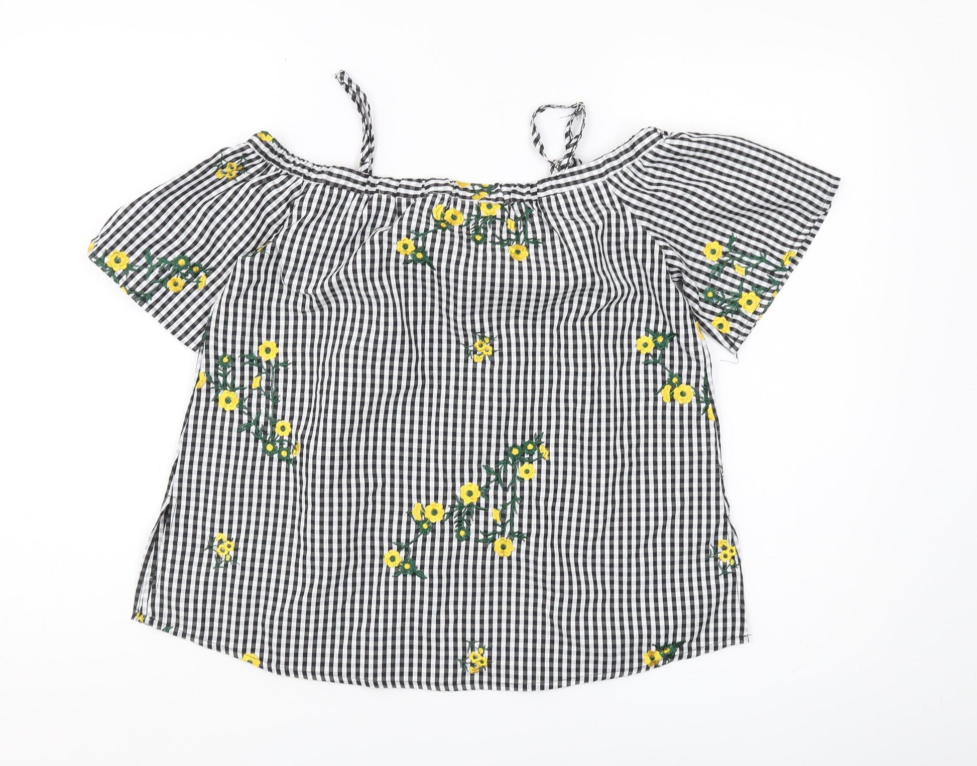 Blue Vanilla Women's Black Check Blouse, Size 8, Off Shoulder