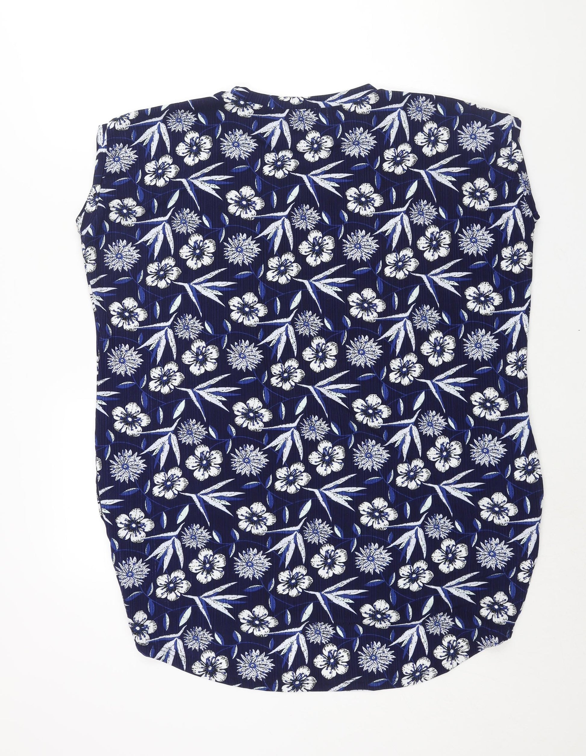 Blue Vanilla Womens Blue Floral Polyester Basic Blouse Size S Round Neck - Rouched Size S-M