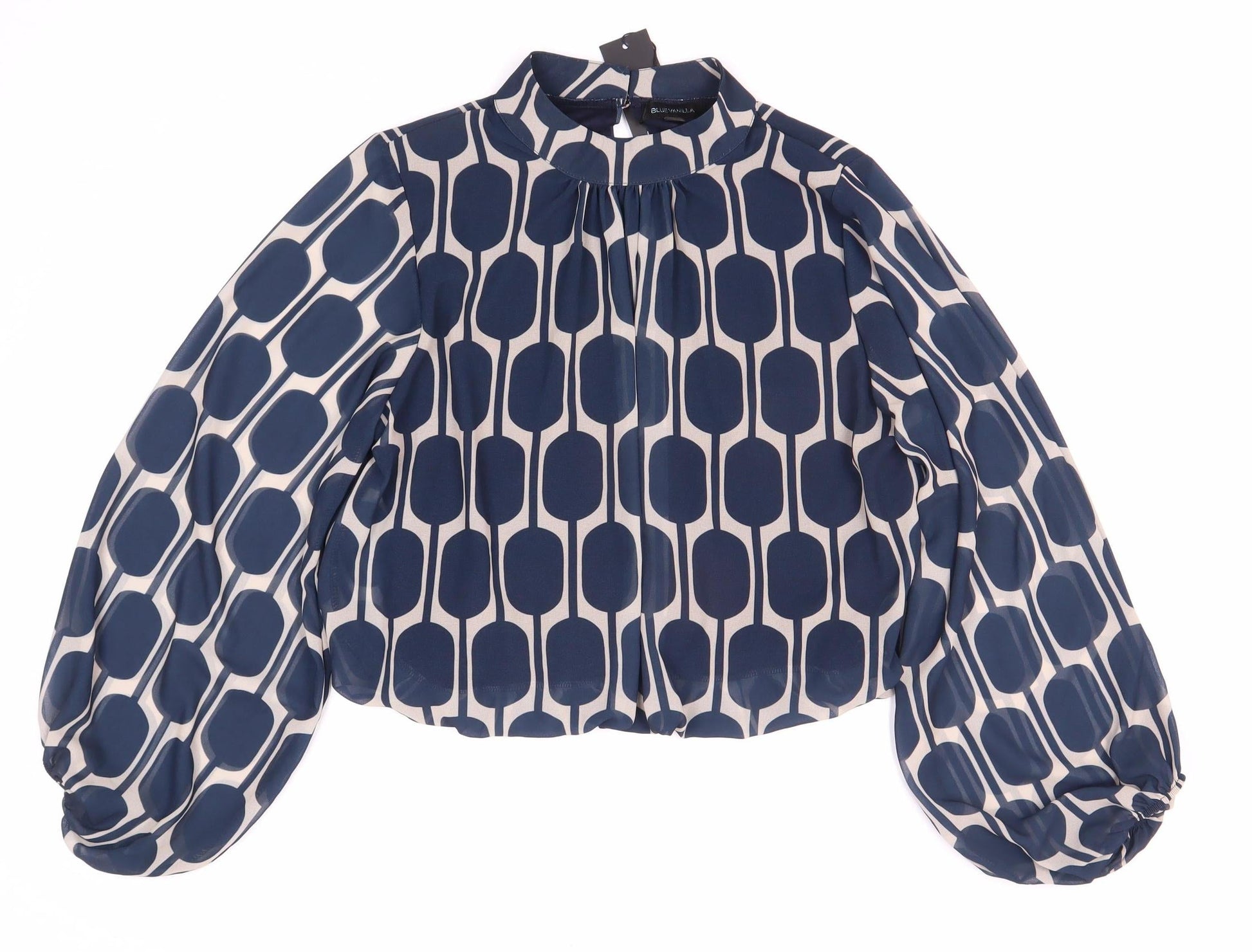 Blue Vanilla Women's Geometric Blouse, S/M, Collared, New
