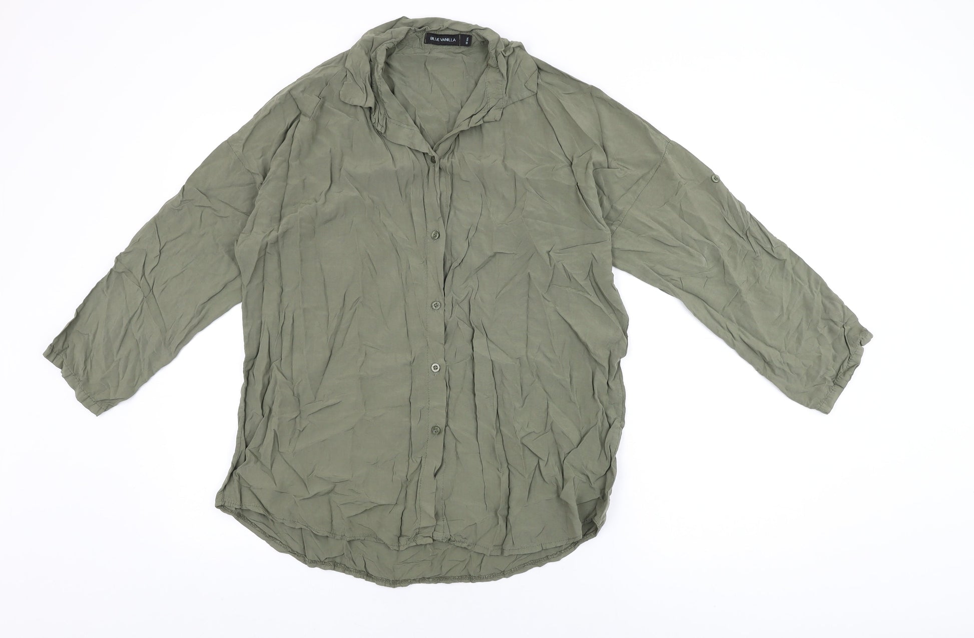 Blue Vanilla Womens Green Viscose Basic Button-Up Size M Collared