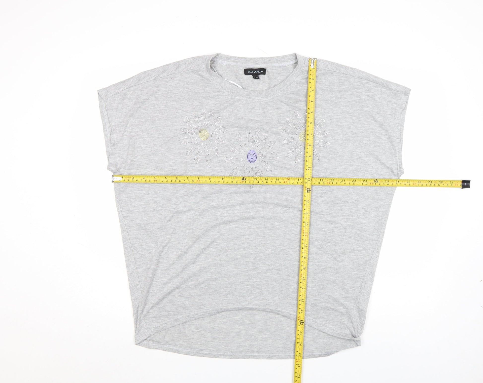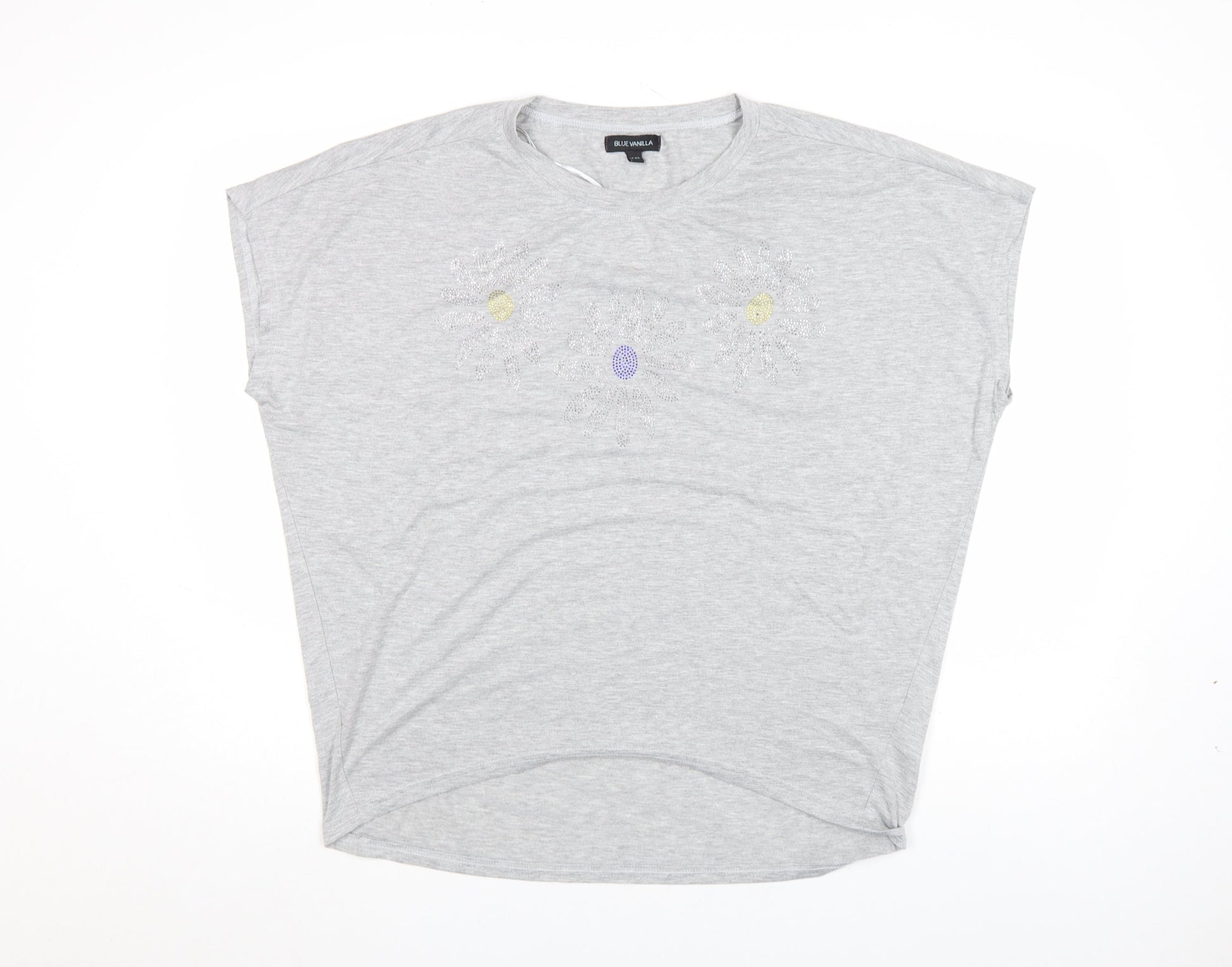 Blue Vanilla Women's Grey Beaded Flower Relaxed Fit T-Shirt Size M/L