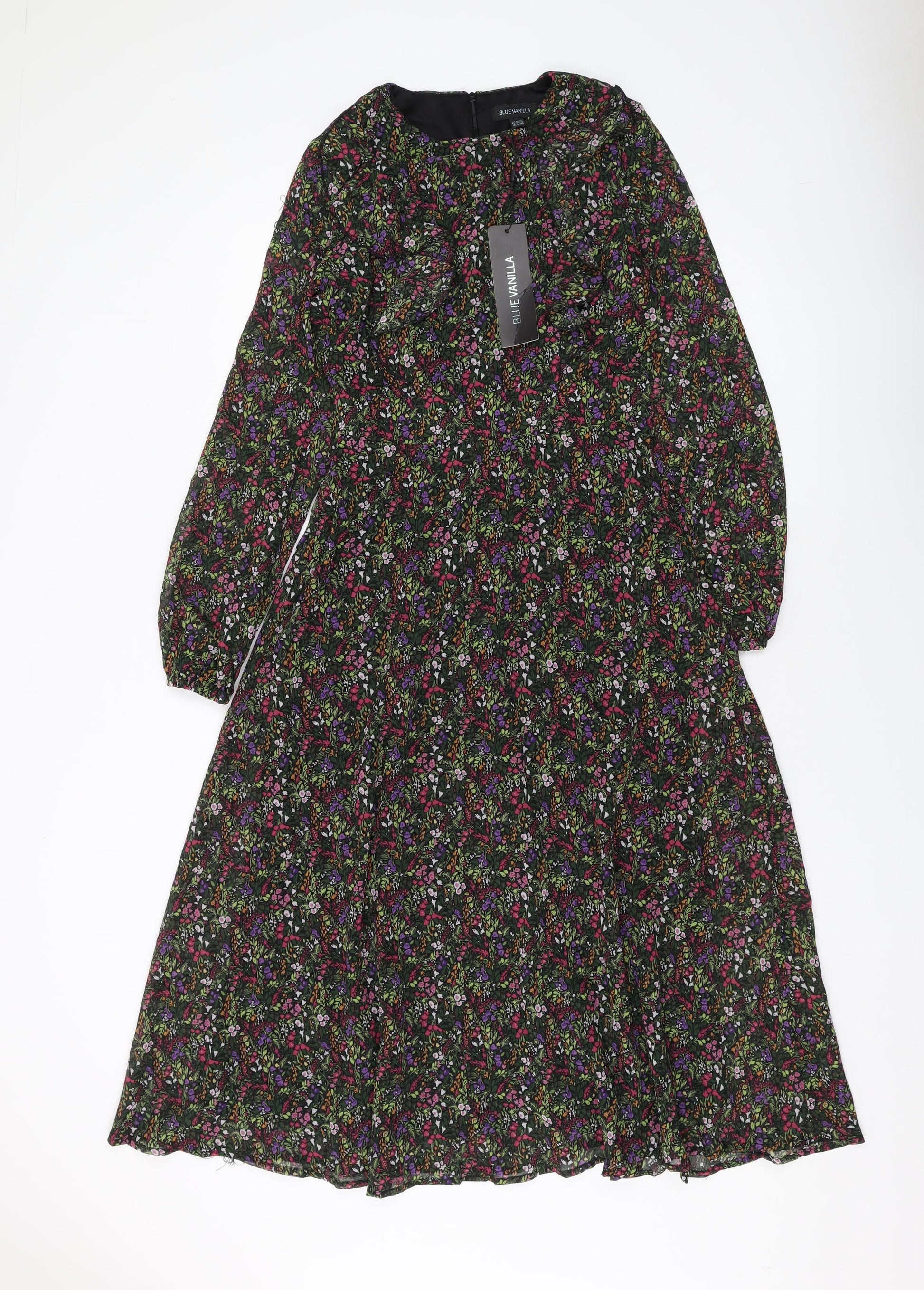 Blue Vanilla Womens Multicoloured Floral Polyester A-Line Size 8 Round Neck Zip