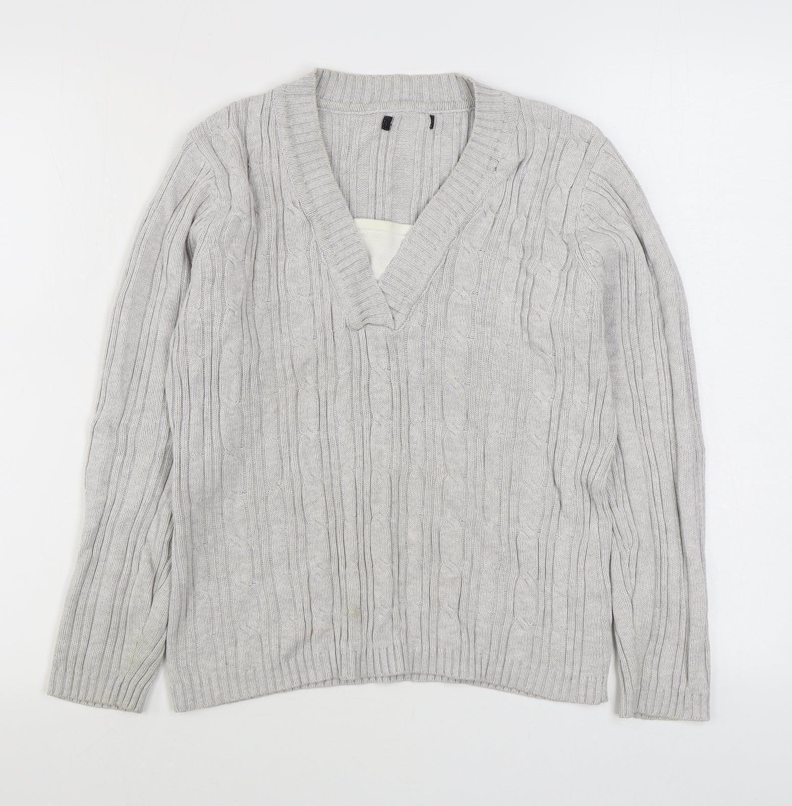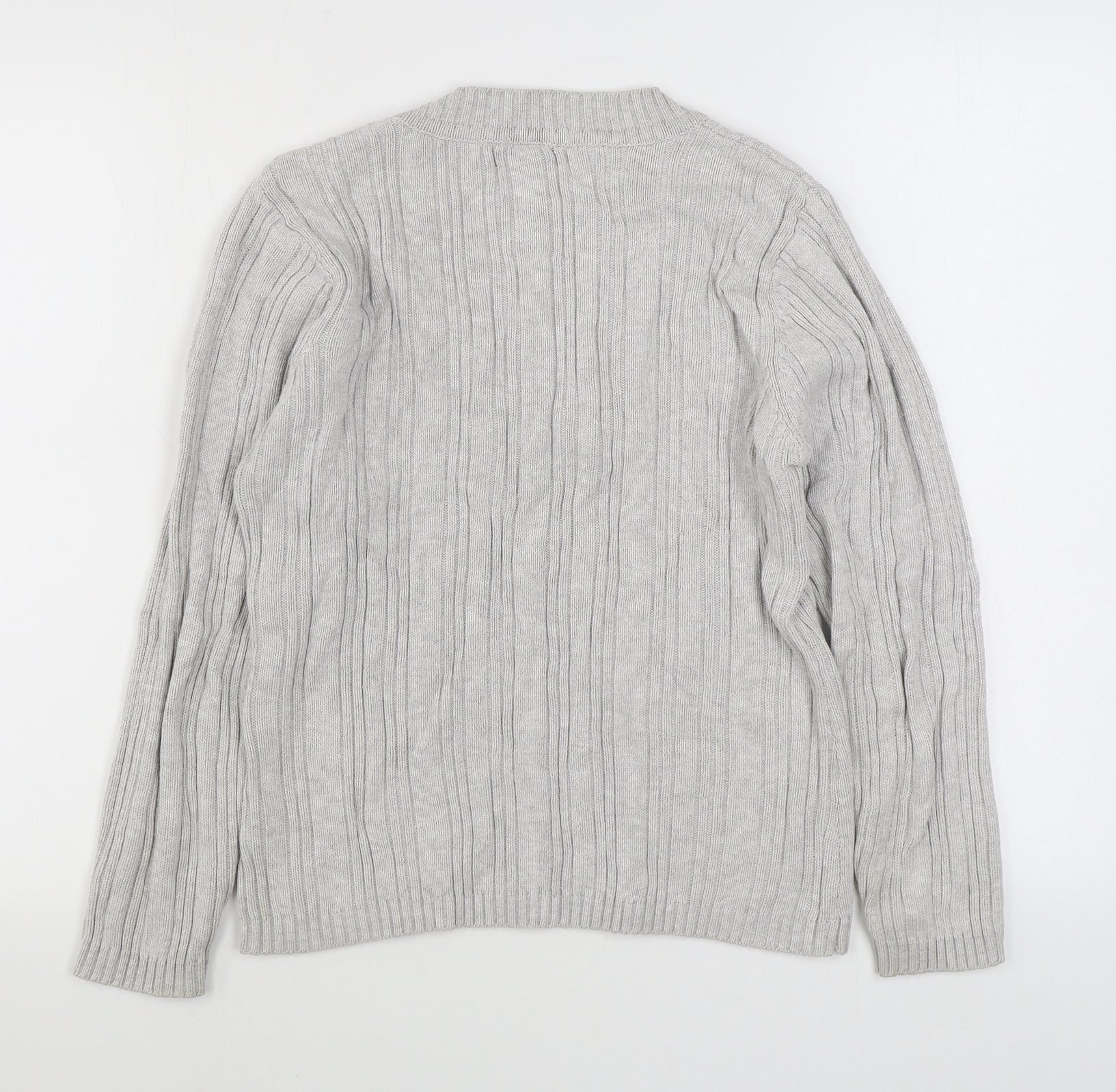 BM Mens Grey V-Neck Cotton Pullover Jumper Size M