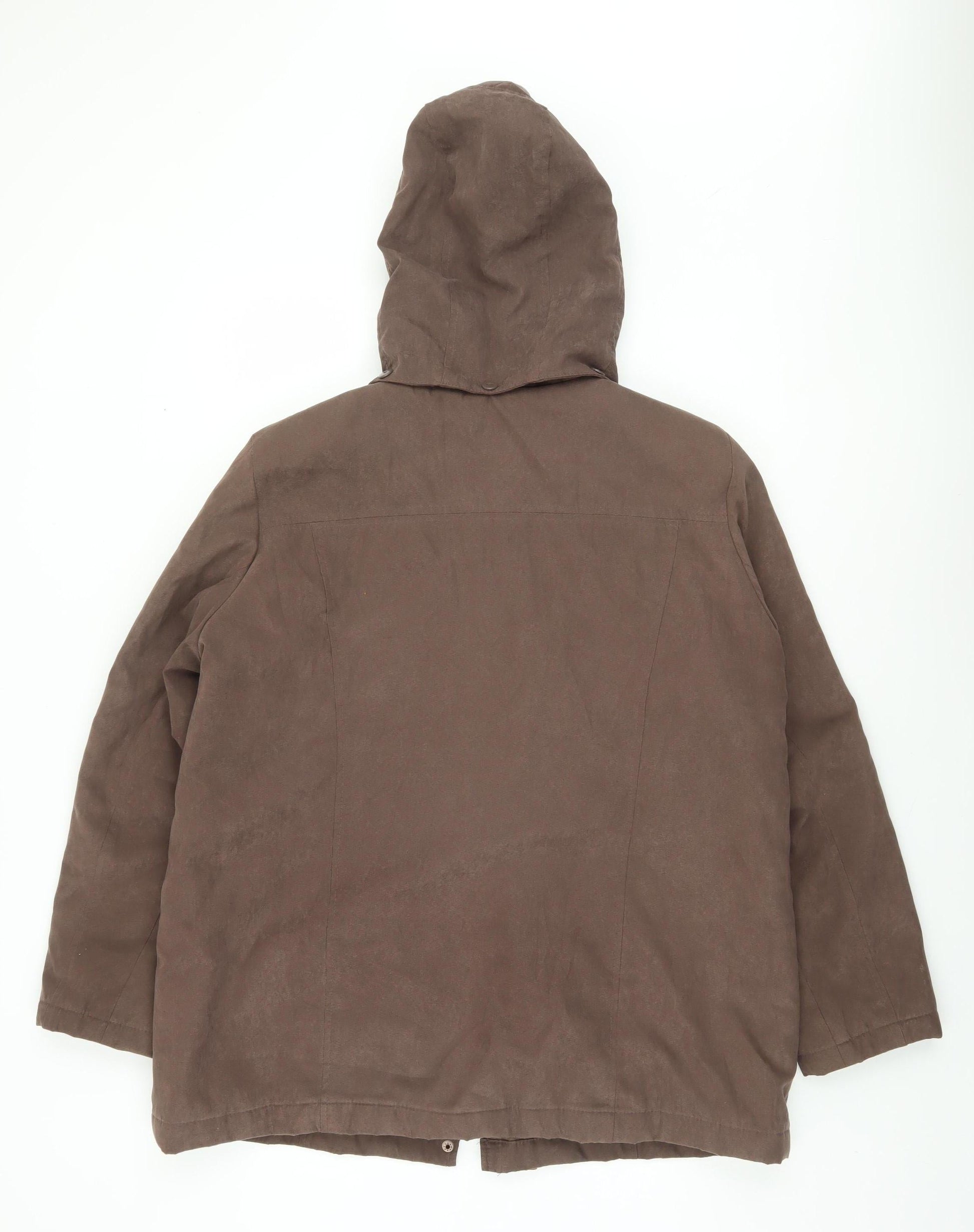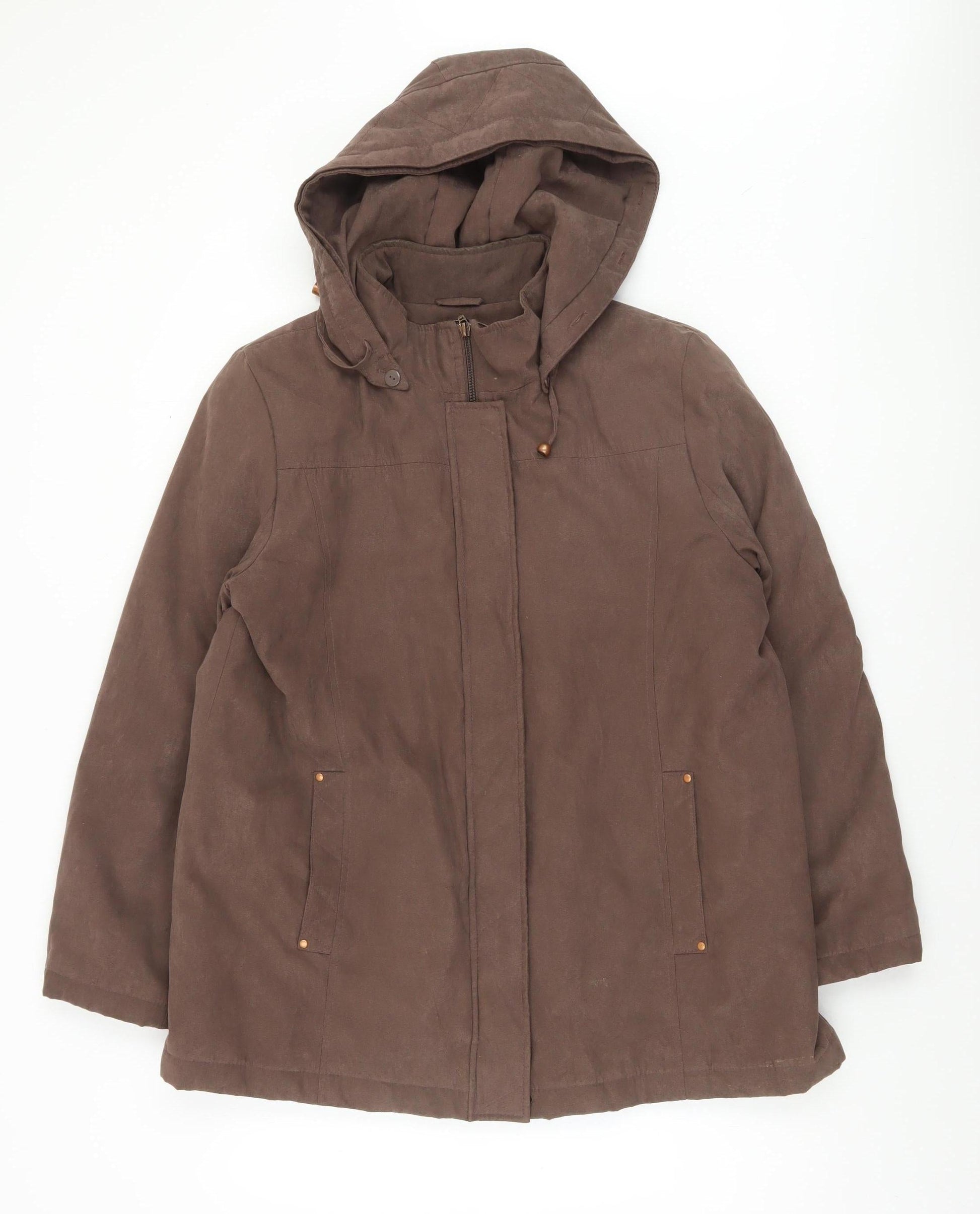 Bm Women Brown Hooded Parka Coat M Mid-Length Polyester