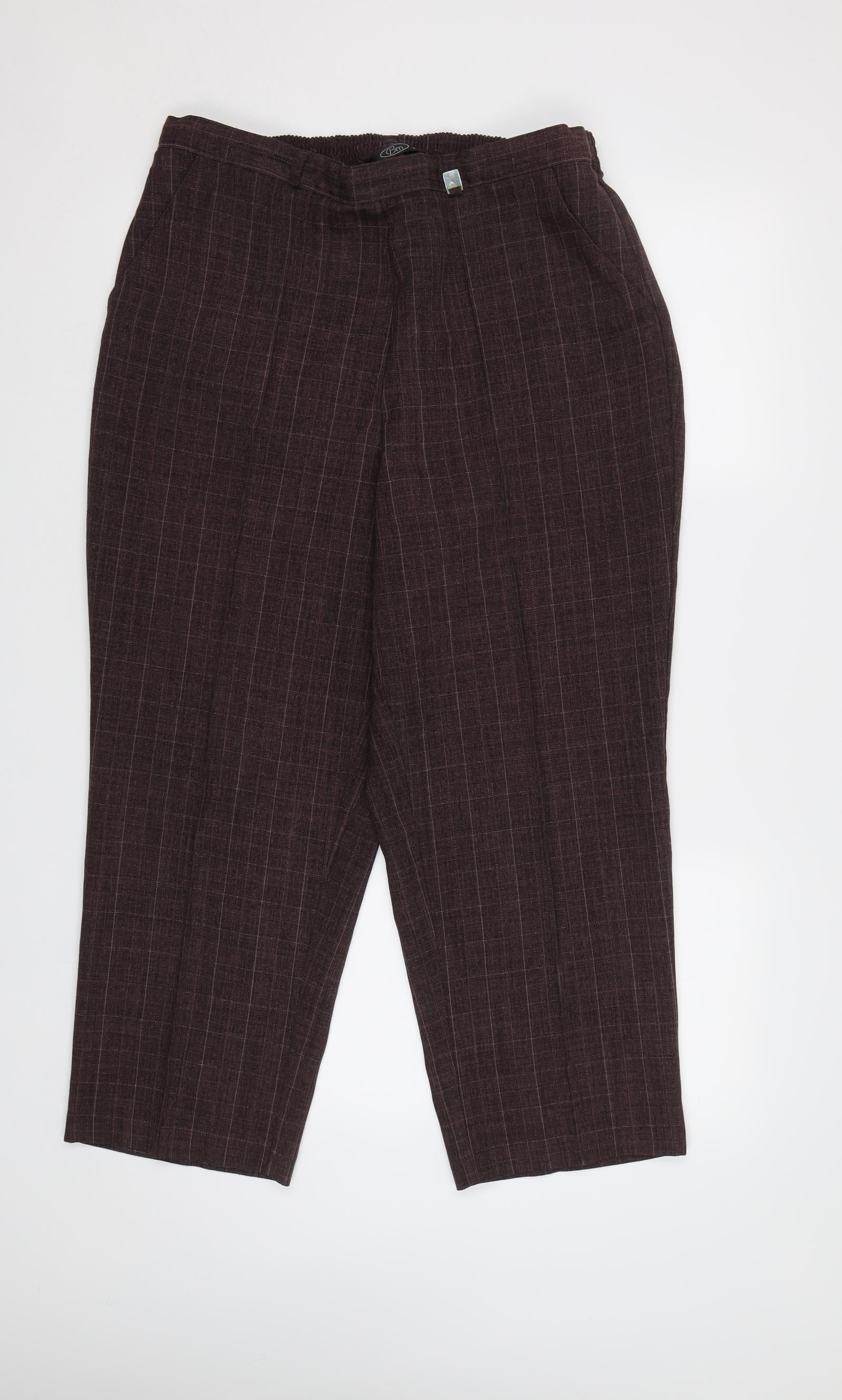 BM Womens Purple Check Trousers Size 16 L25 in - Elastic Waist Band