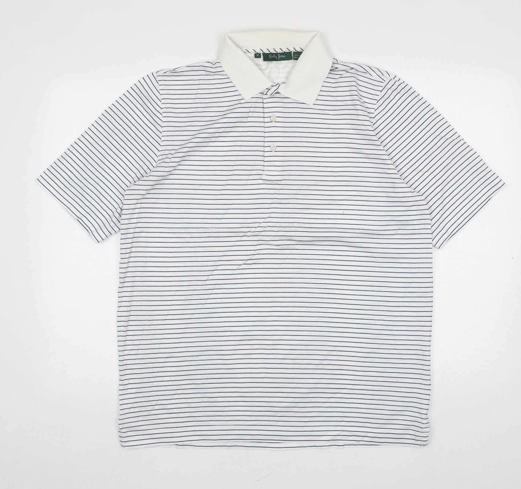 Bobby Jones Mens White Striped Polyester Polo Size M Collared Pullover