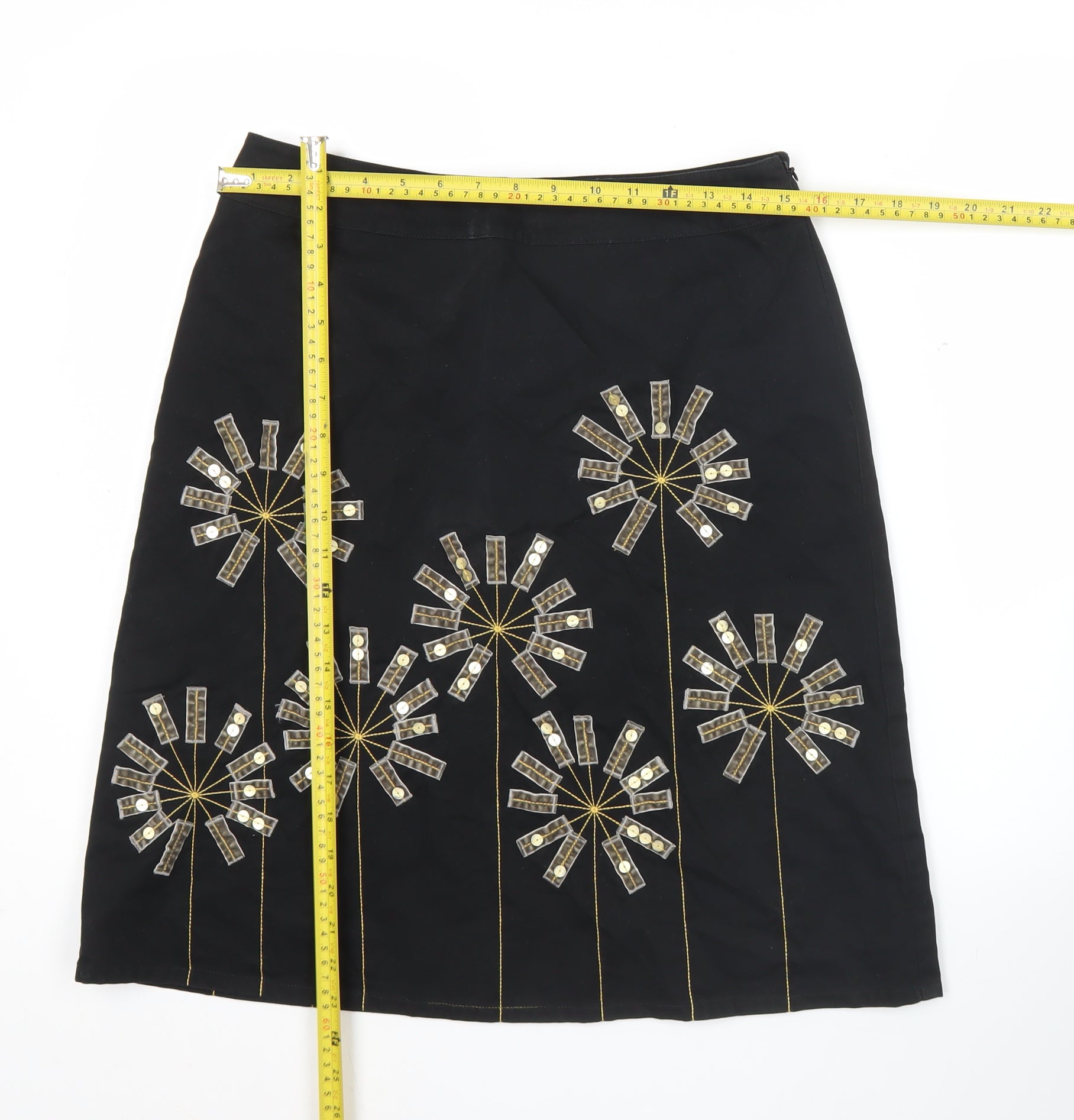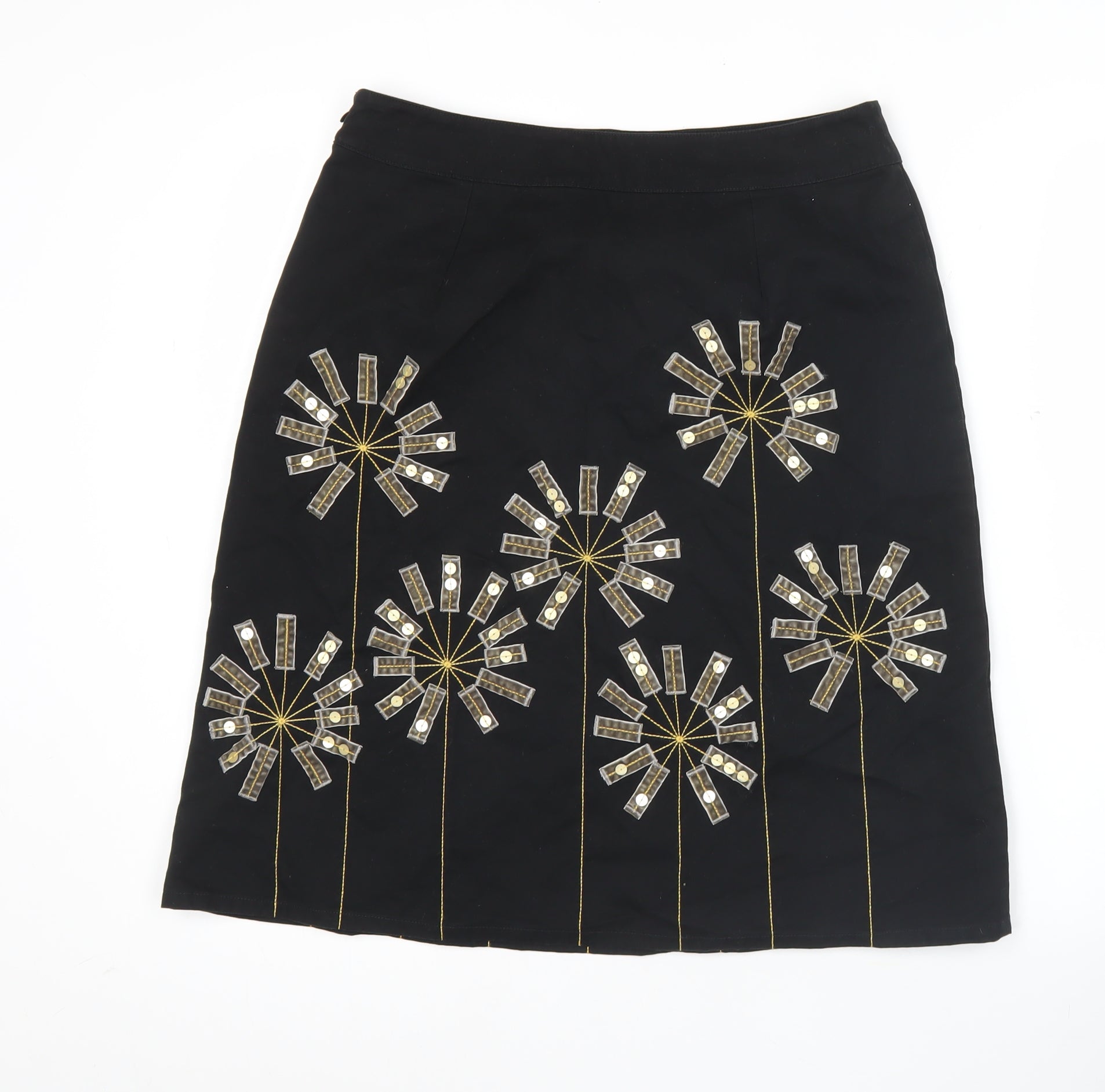 Boden Women Black A-Line Knee Length Skirt UK 12 Floral Sequin