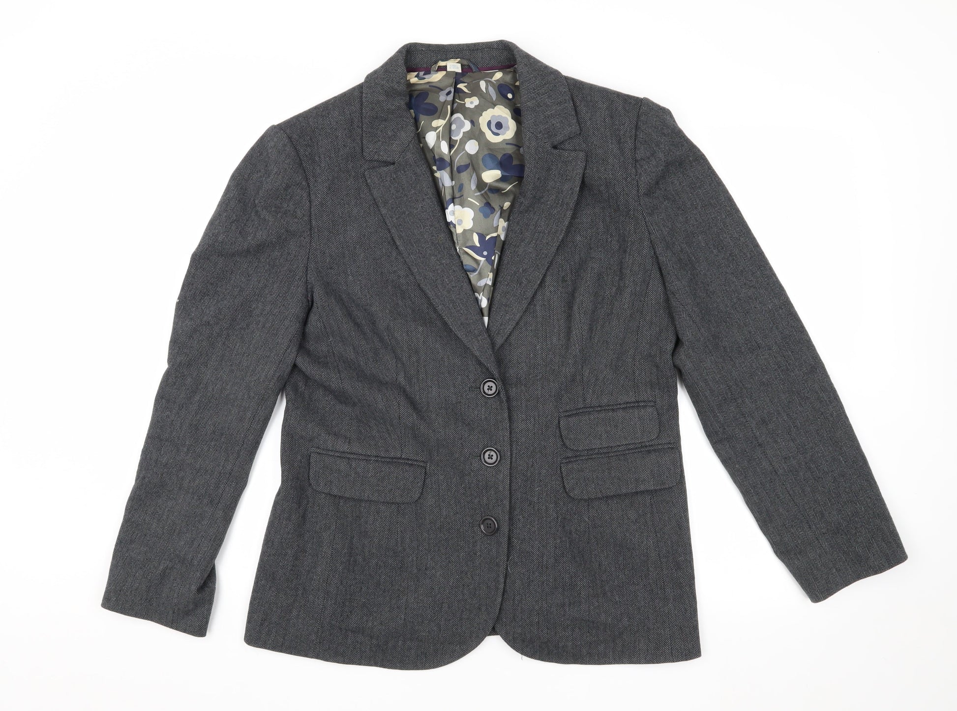 Boden Women Grey Blazer UK 10 Herringbone Wool