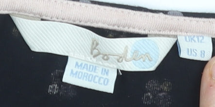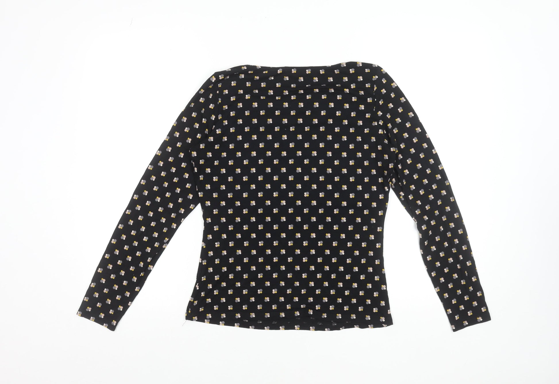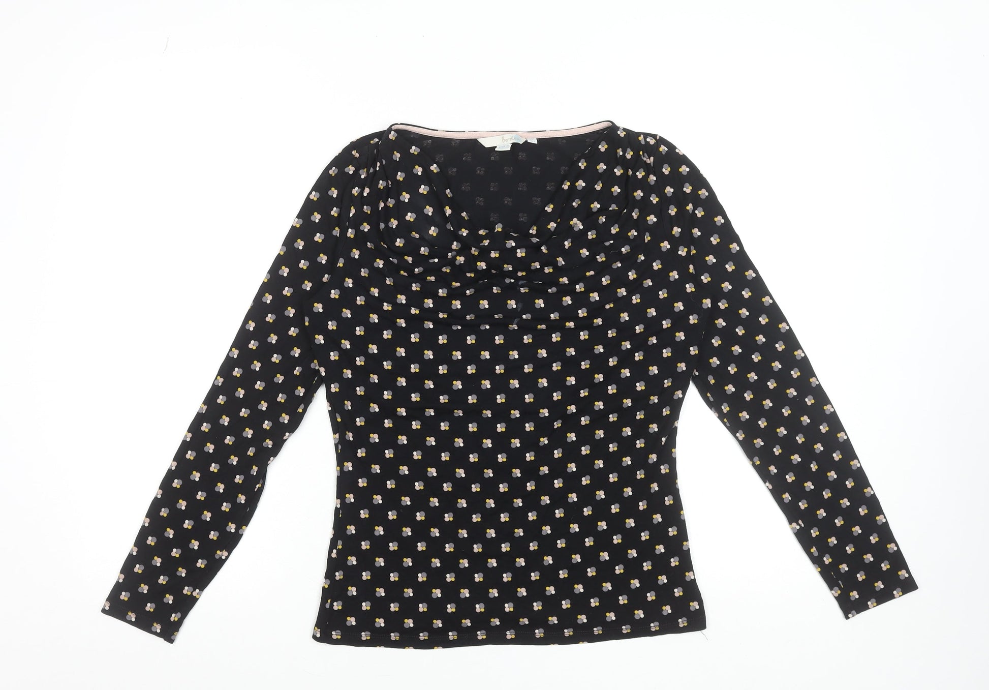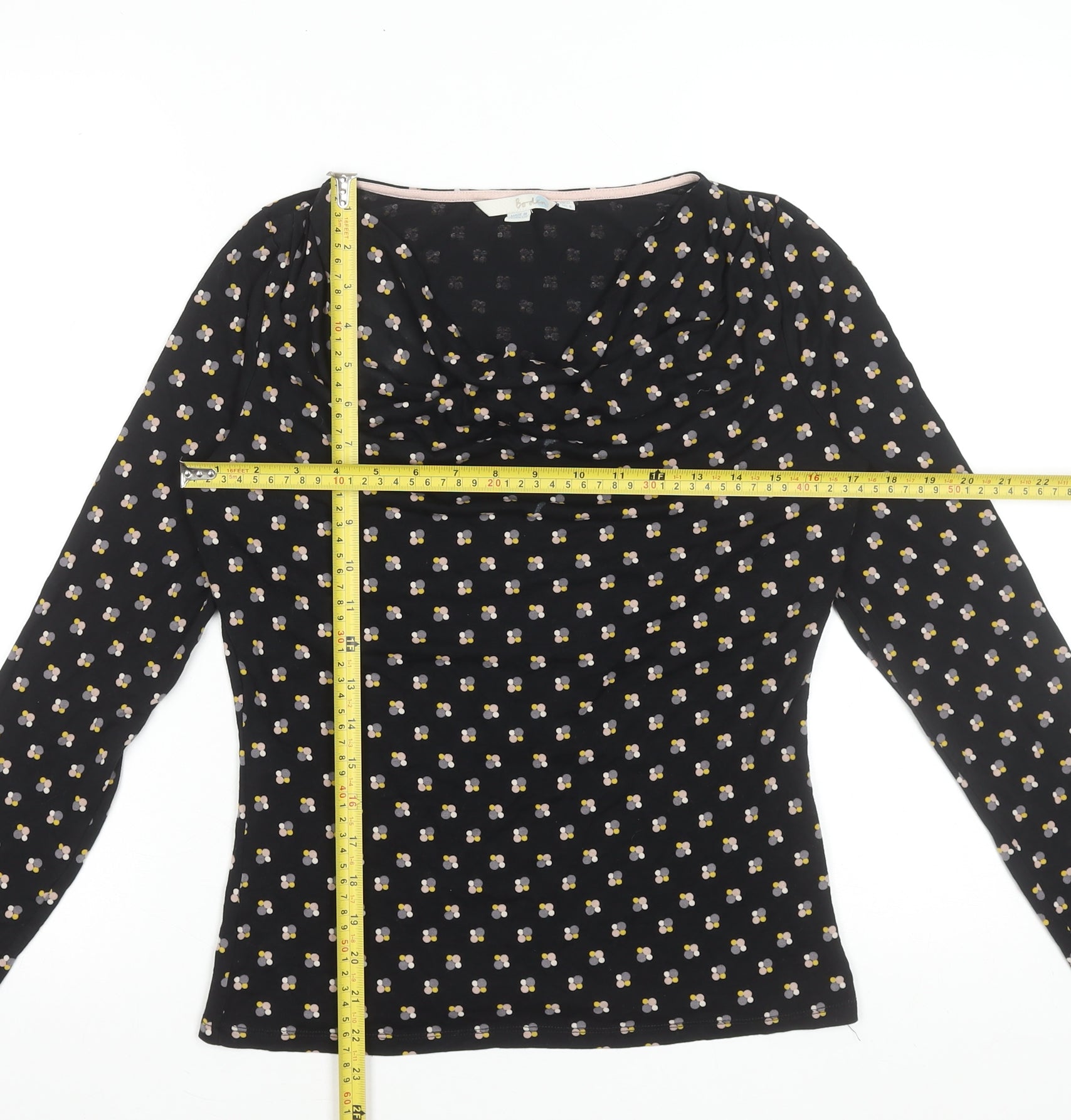 Boden Women’s Black Floral Jersey Cowl Neck Long Sleeve Blouse UK 12
