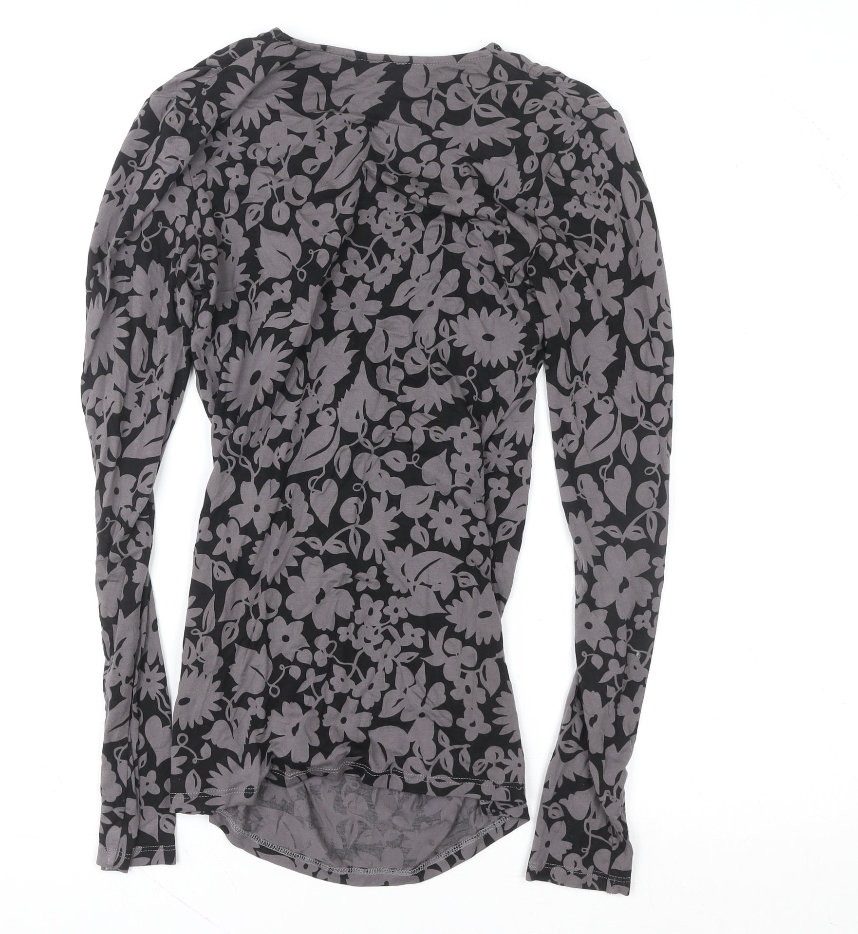 Boden Women’s Grey Floral Wrap Blouse UK 6 V-Neck Long Sleeve Top