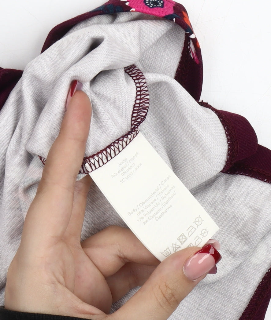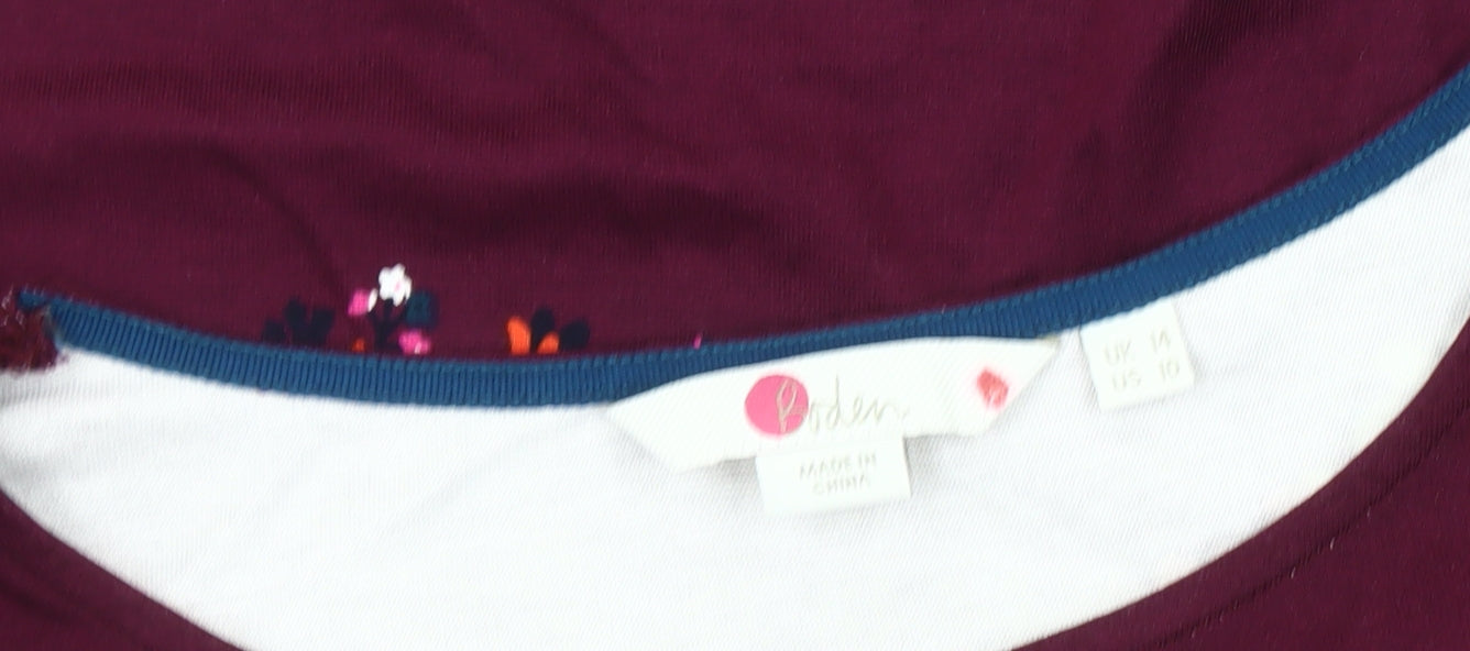 Boden Women’s Purple Floral Jersey Blouse UK 14 Short Flutter Sleeve