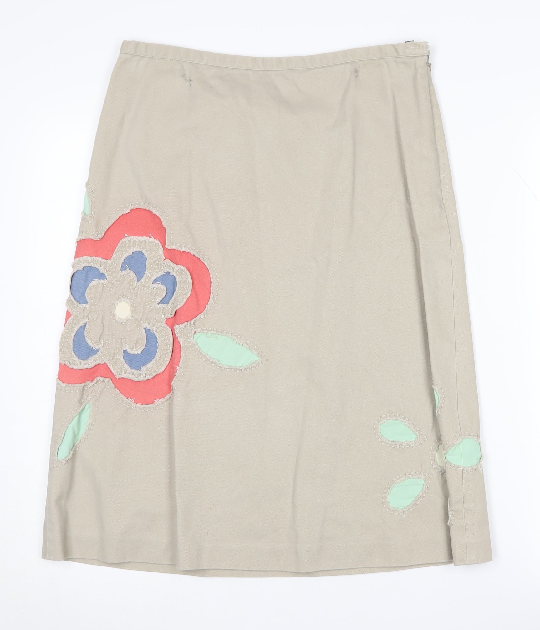 Boden Women's Beige Floral A-Line Midi Skirt Size 10