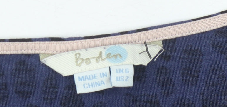 Boden Women's Blue Animal Print Top, Size 6, 3/4 Sleeves