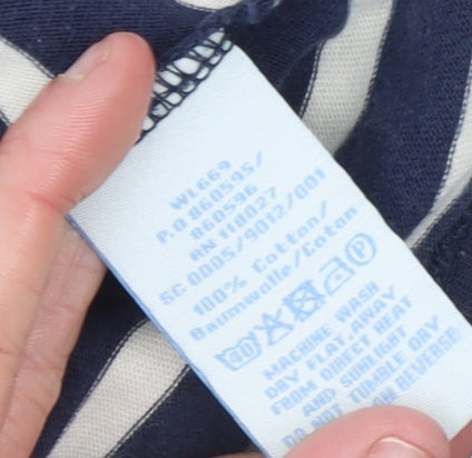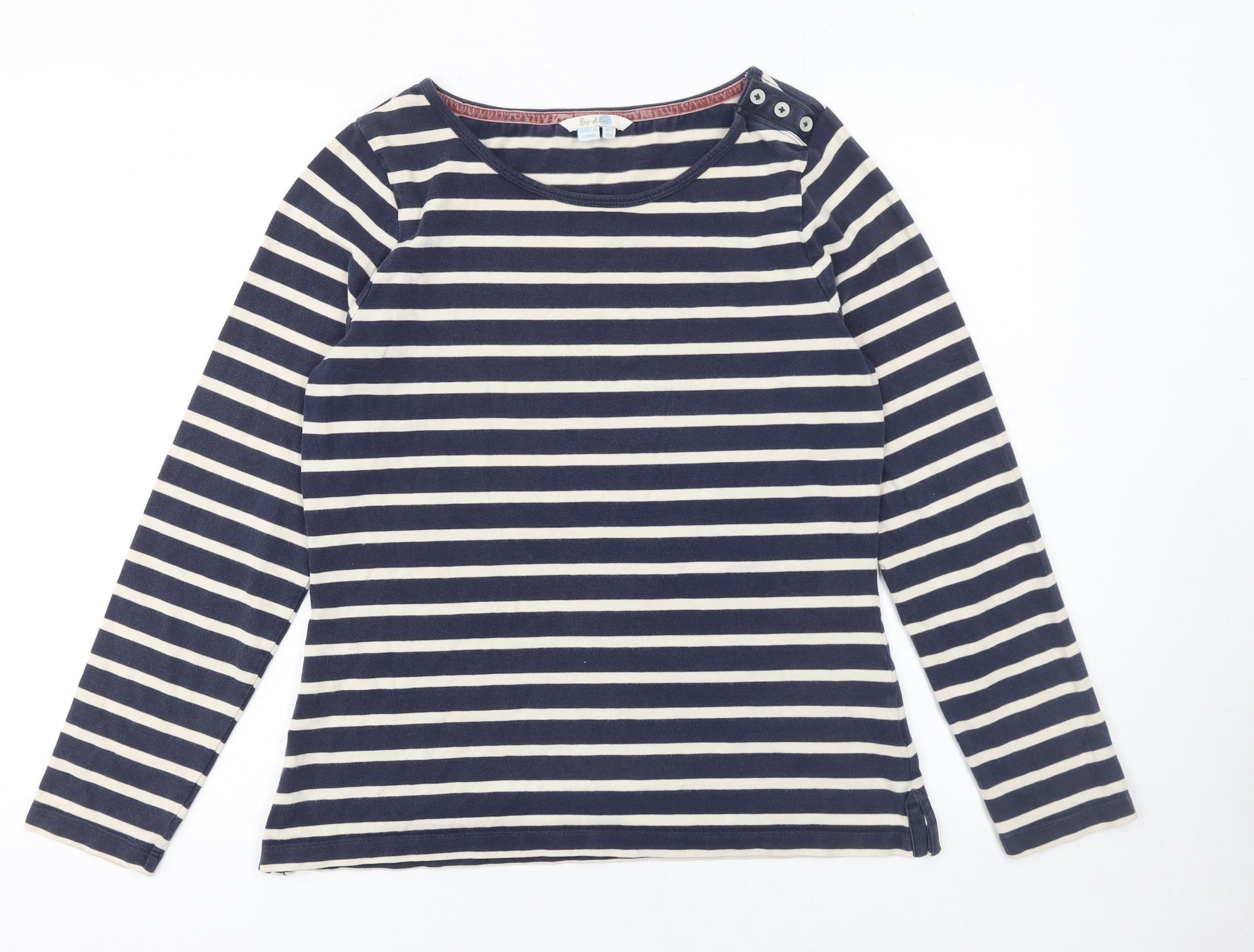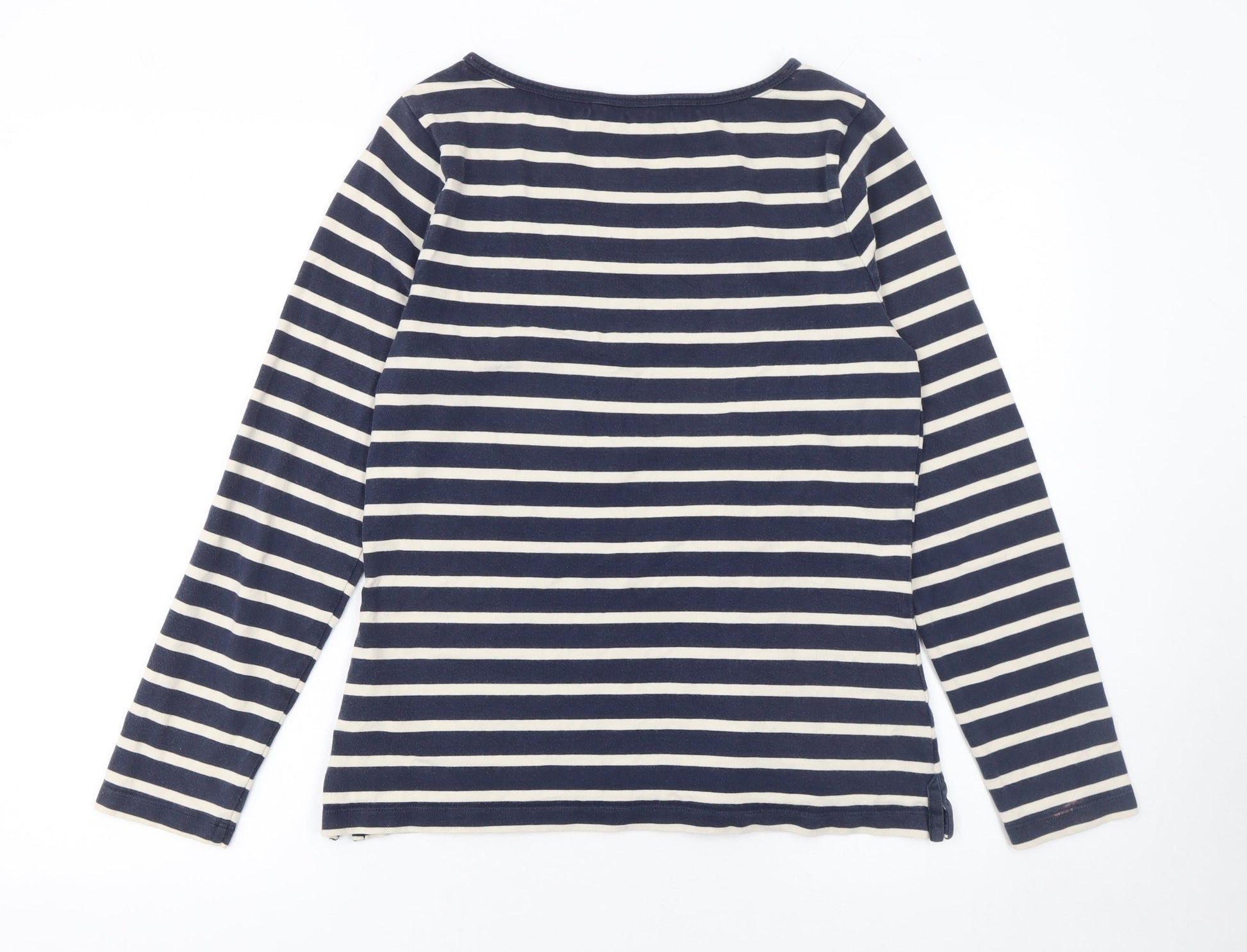 Boden Women's Blue Striped Cotton Long Sleeve Boat Neck Top Size 12