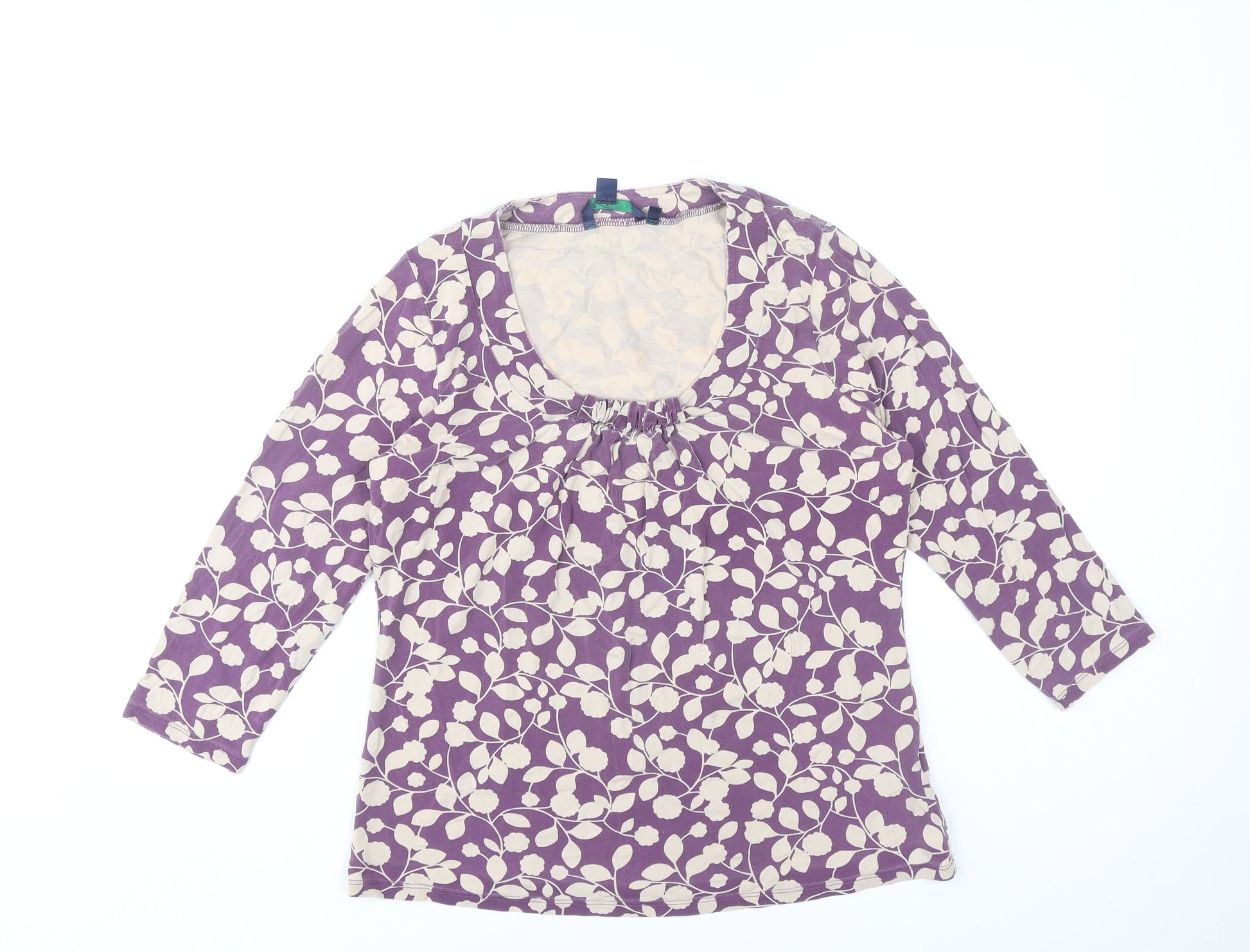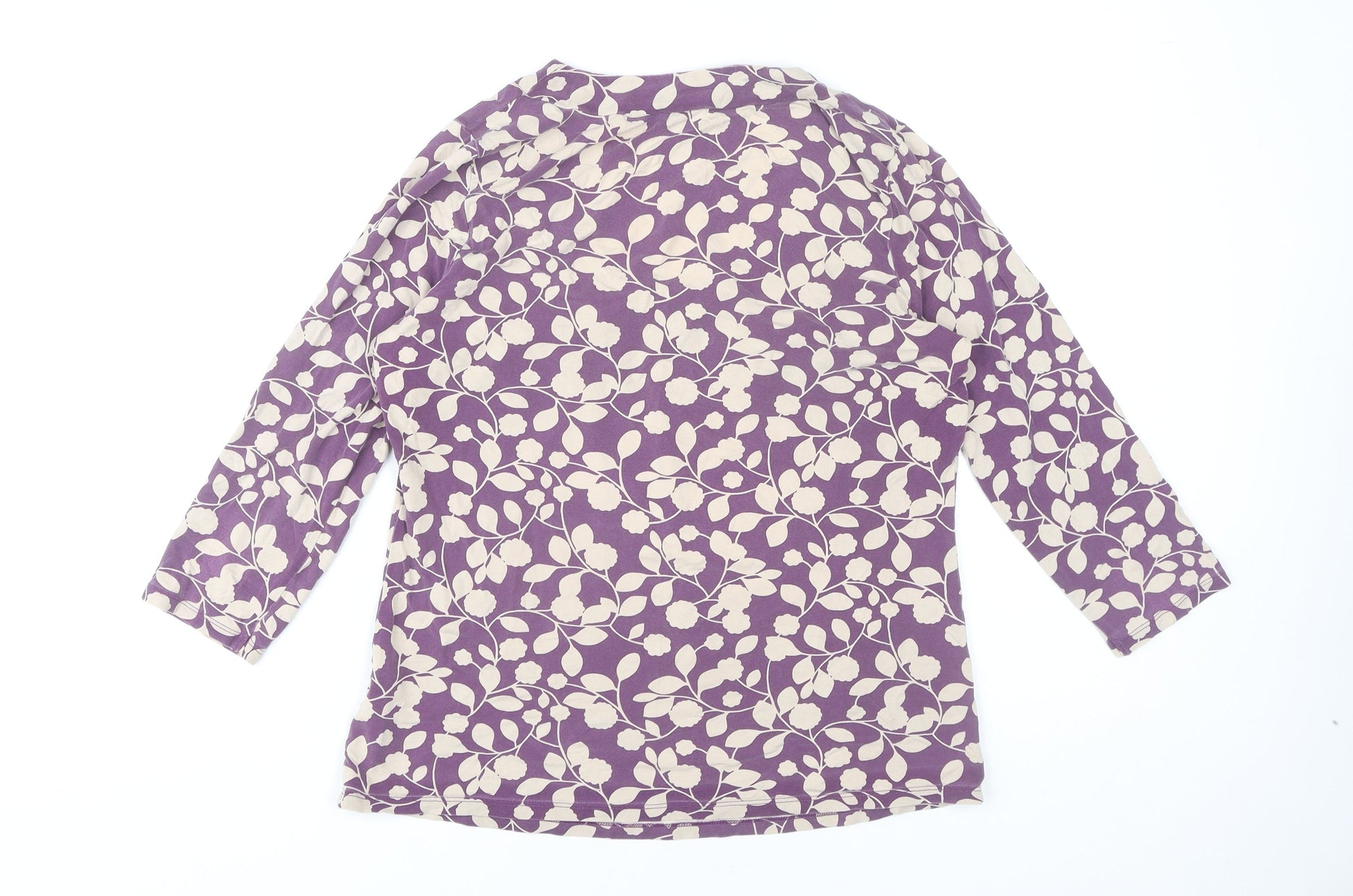 Boden Womens Purple Floral Tunic Blouse Size 14 3/4 Sleeve