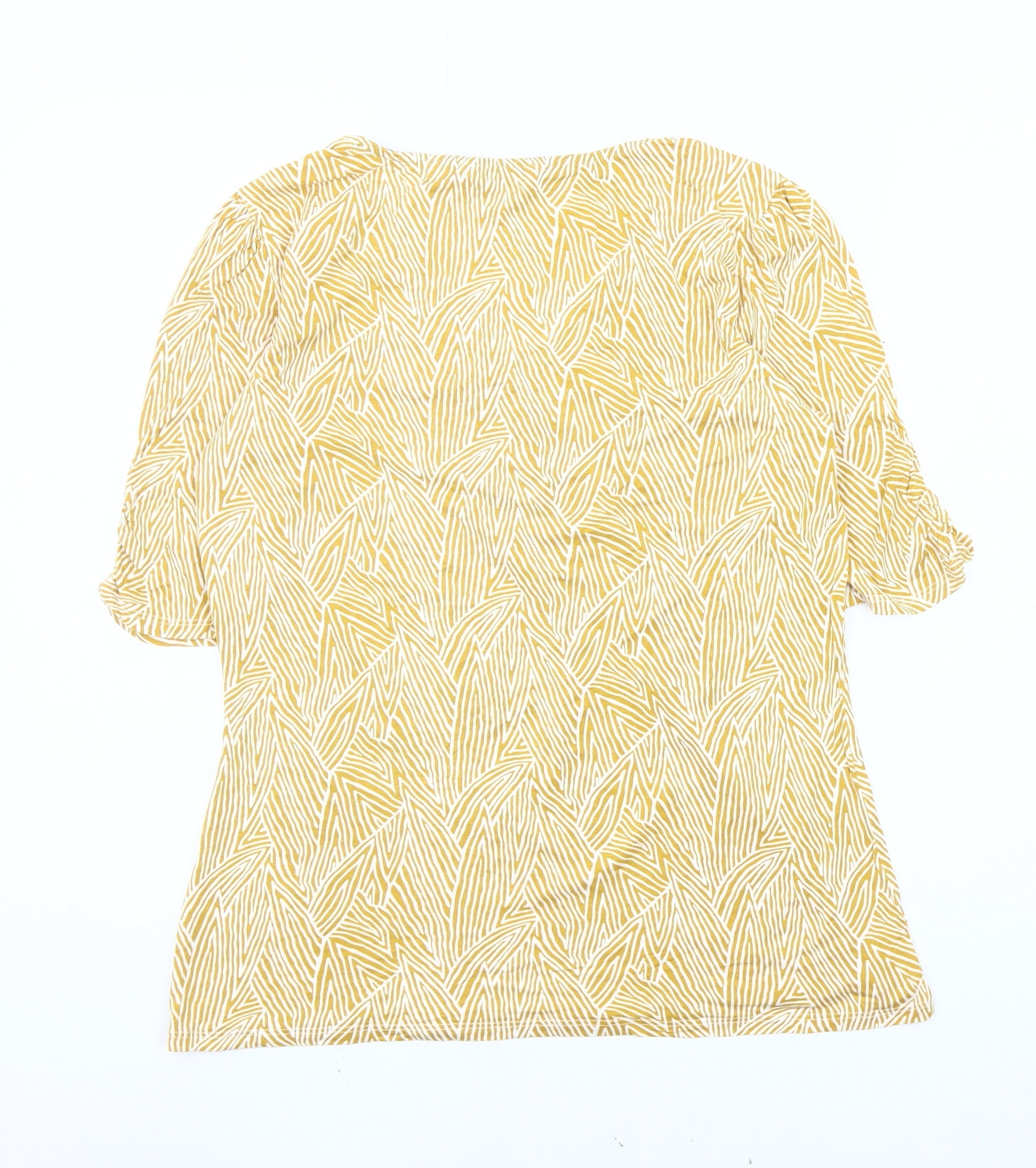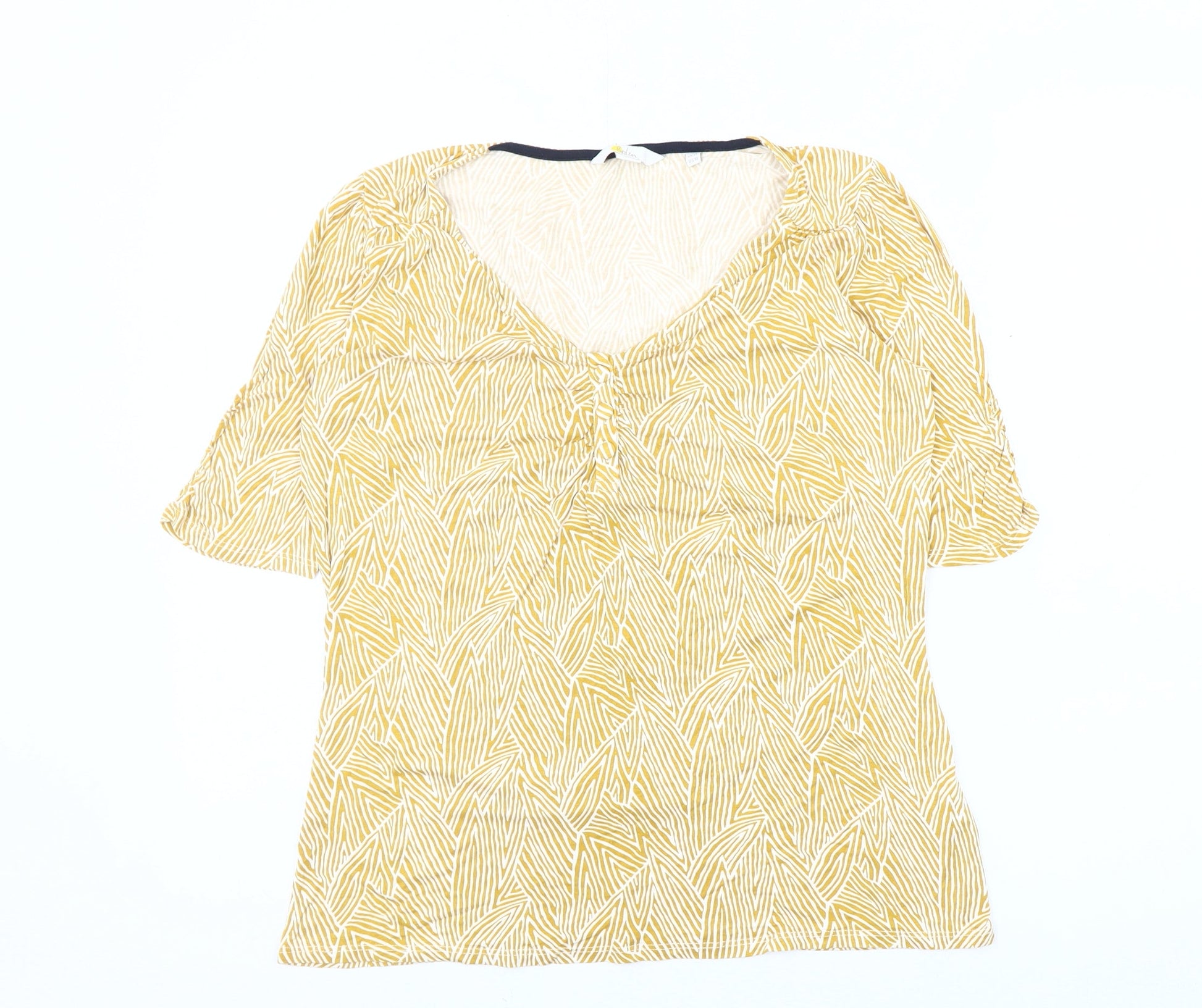 Boden Women's Yellow Geometric V-Neck Top - Size 14