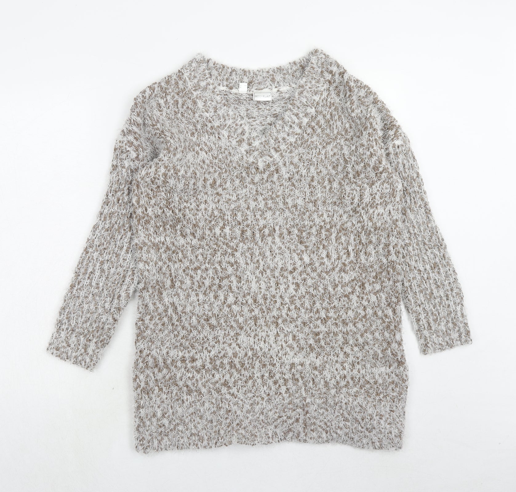Body Flirt Womens Beige V-Neck Polyester Pullover Jumper Size S