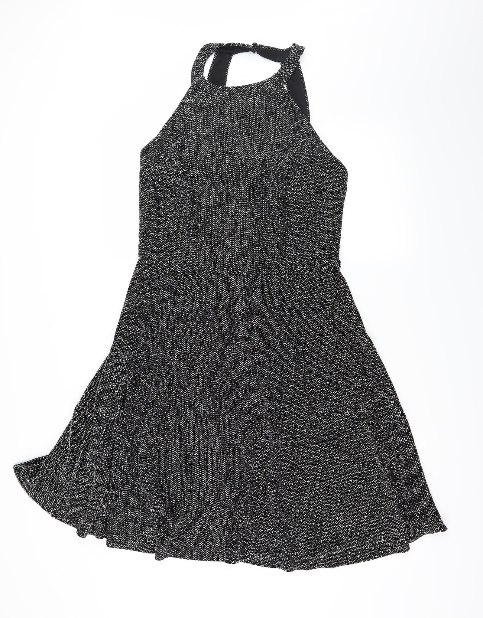 Body Flirt Womens Grey Herringbone Jersey Skater Dress Size M