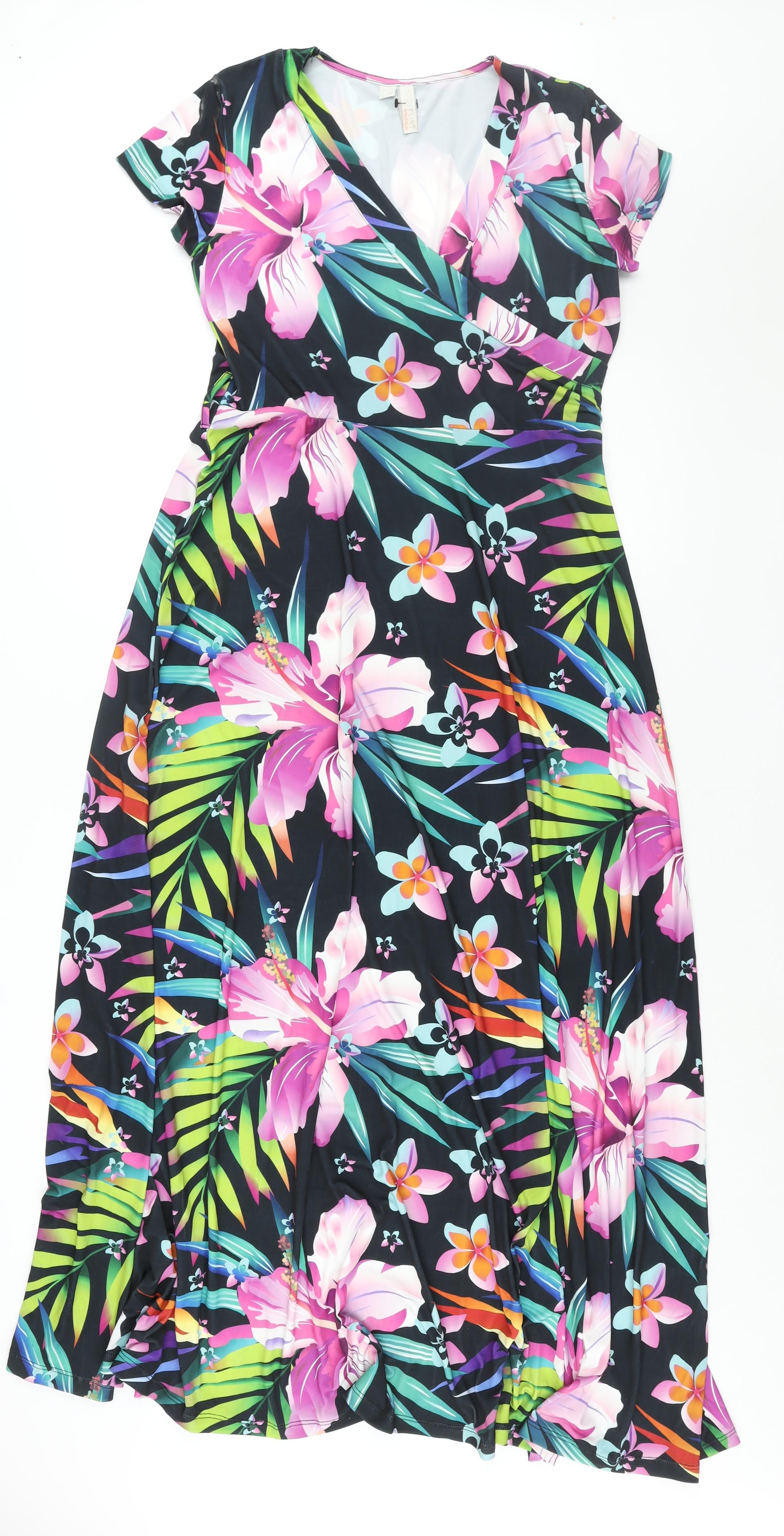 Body Flirt Womens Multicoloured Floral Polyester Maxi Size 12 V-Neck Pullover - Size 12-14