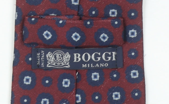 Boggi Milano Men's Red Geometric Wool Silk Pointed Tie One Size