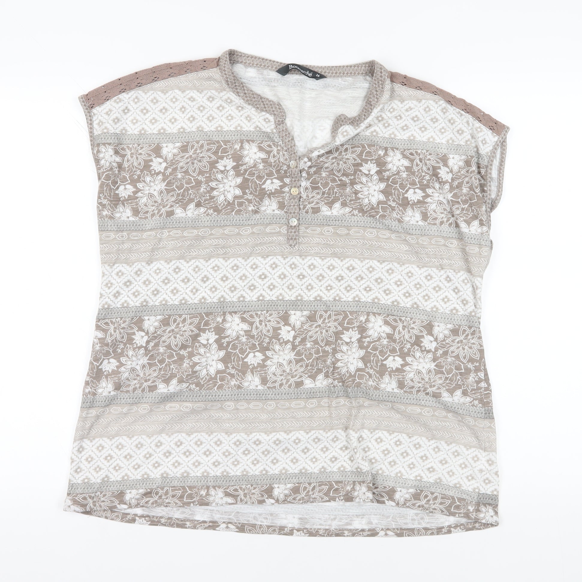 Bonmarché Brown Floral Blouse, Size 16, Casual Comfort