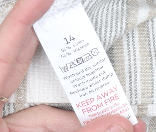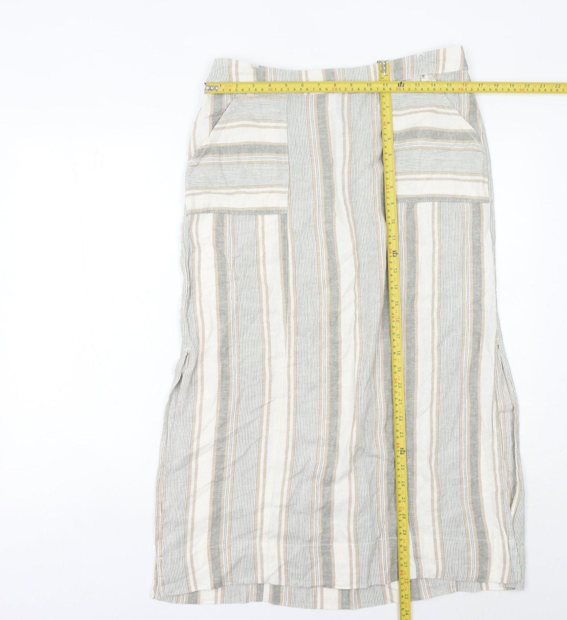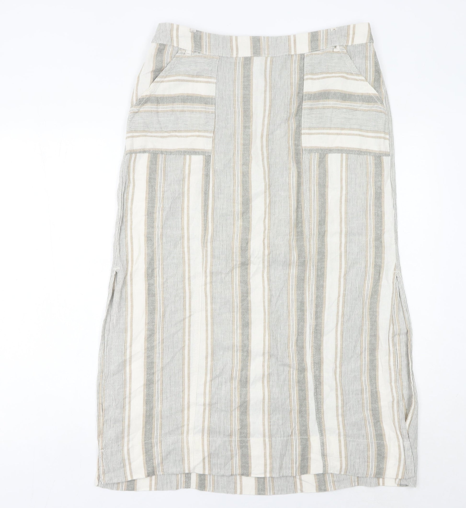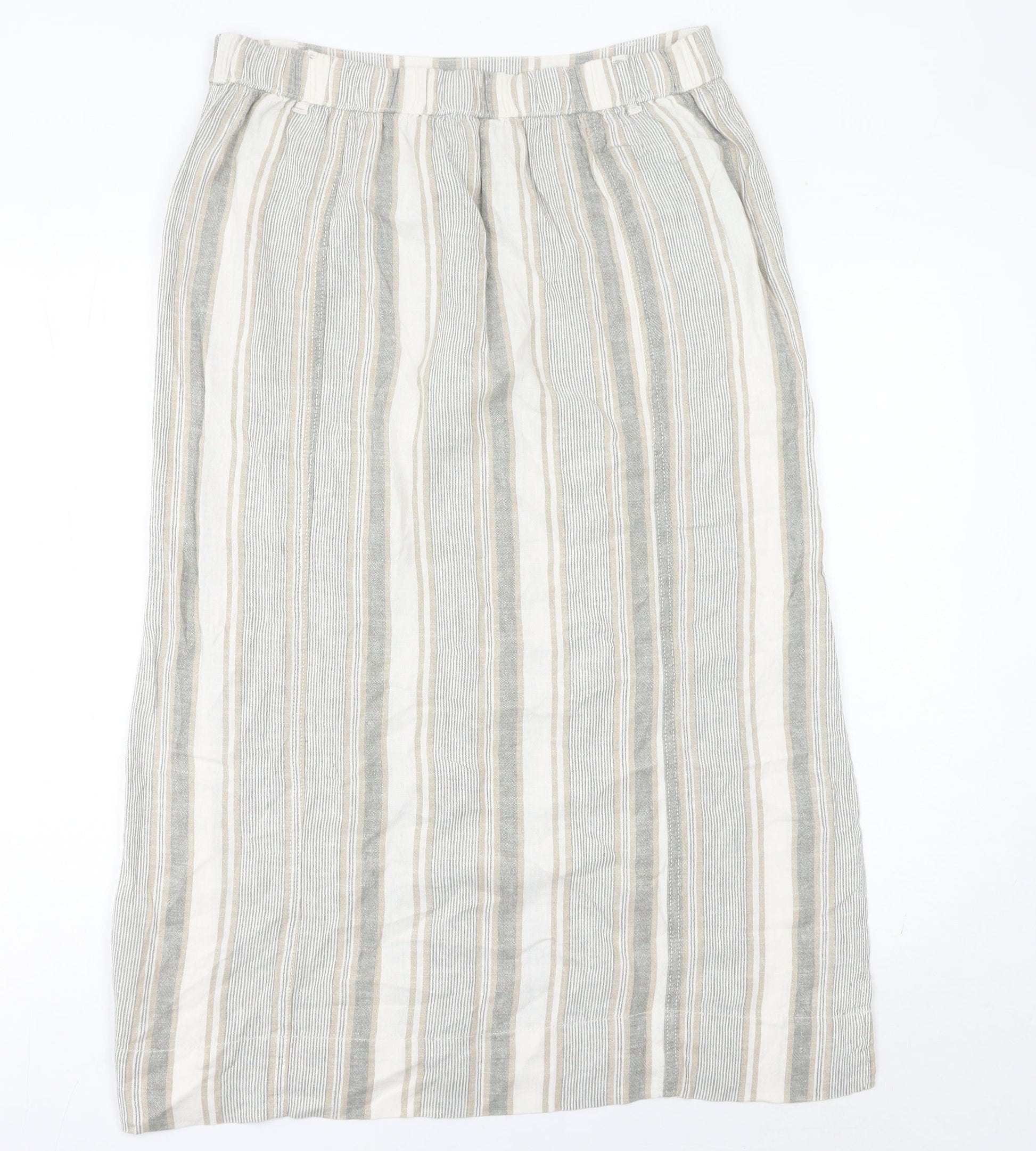 Bonmarché Women’s Beige Striped Midi Linen Viscose Skirt Size 14
