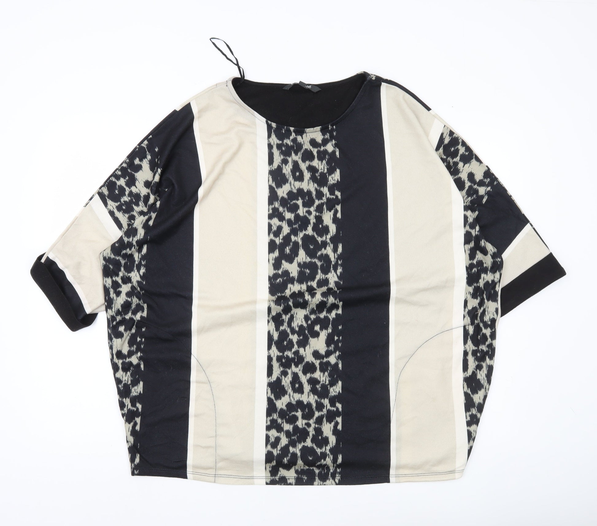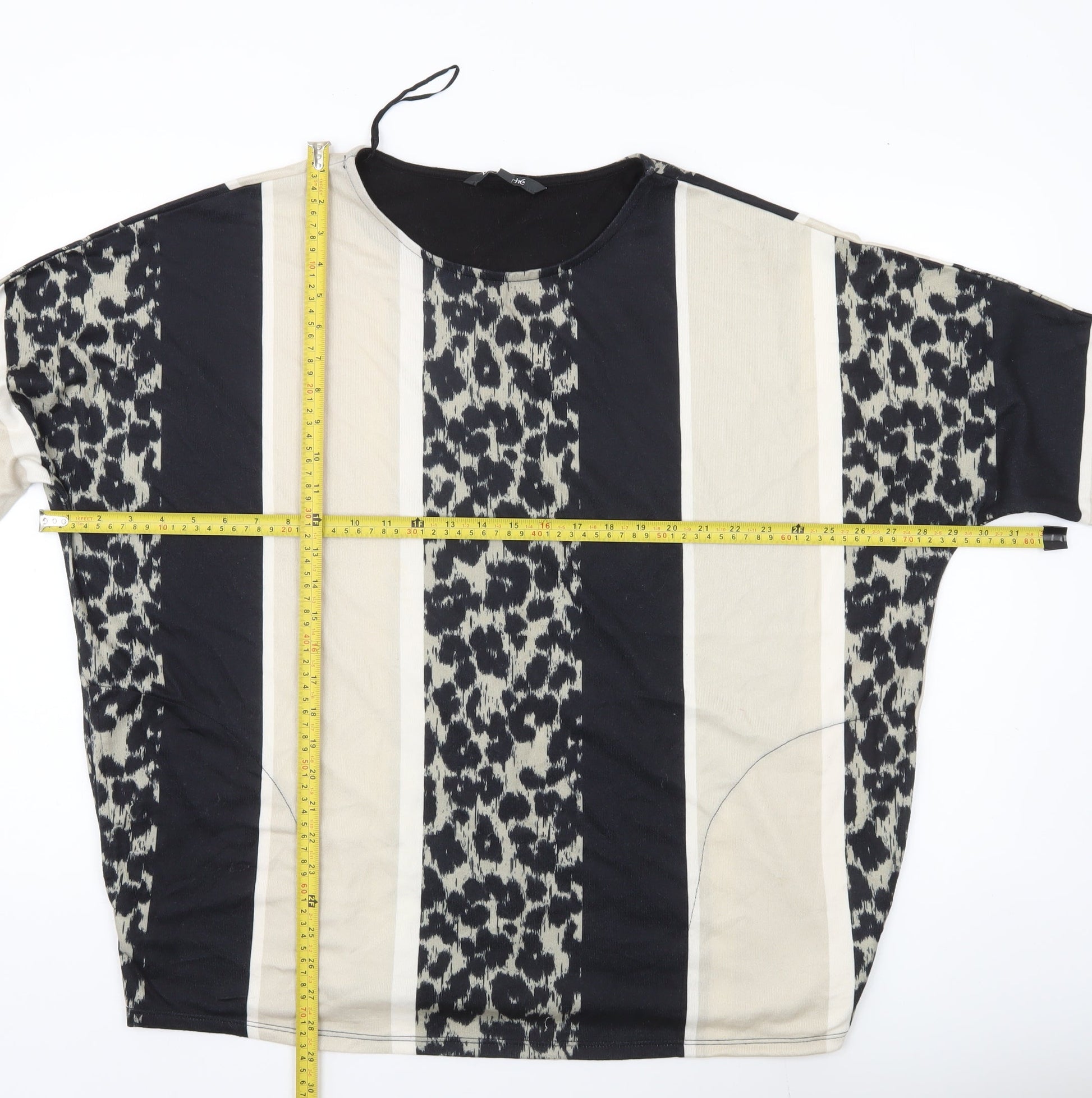 Bonmarché Women’s Black Beige Animal Stripe Tunic Blouse Size 18