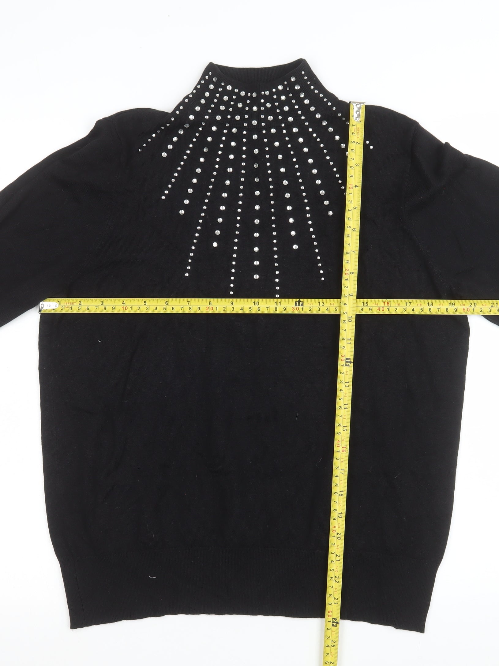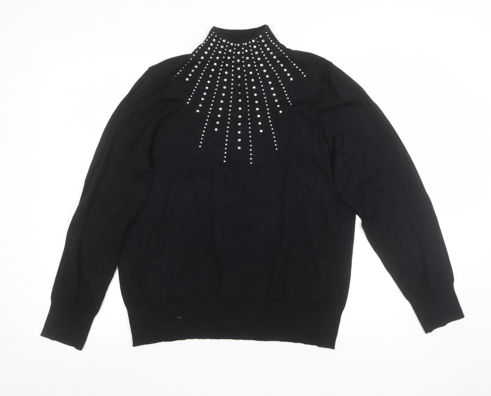 Bonmarché Women’s Black Rhinestone Mock Neck Pullover Sweater Size 16