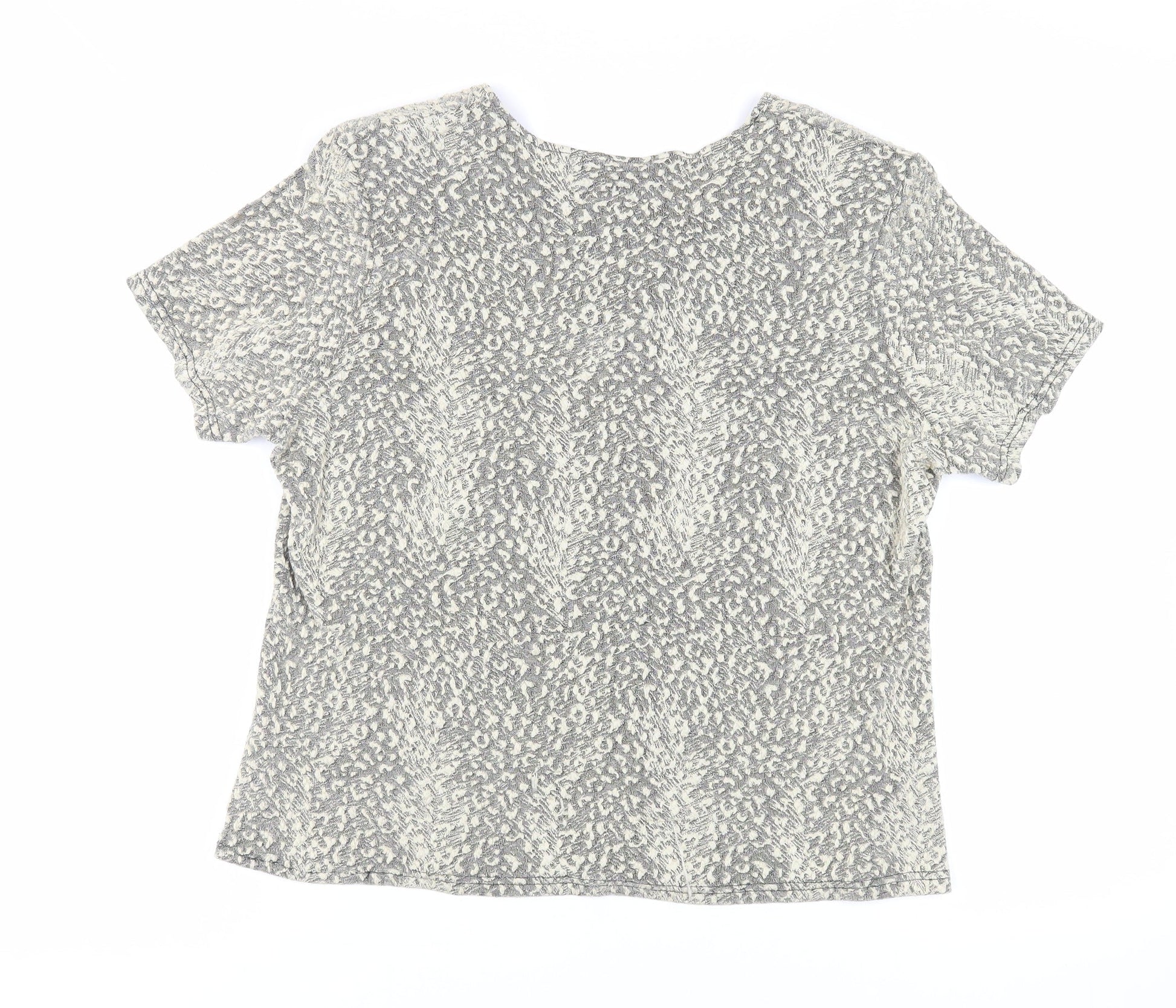 Bonmarché Womens Beige Animal Print Polyester Basic Blouse Size L V-Neck - Shoulder Pads
