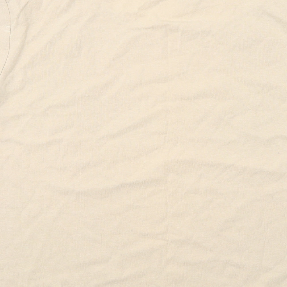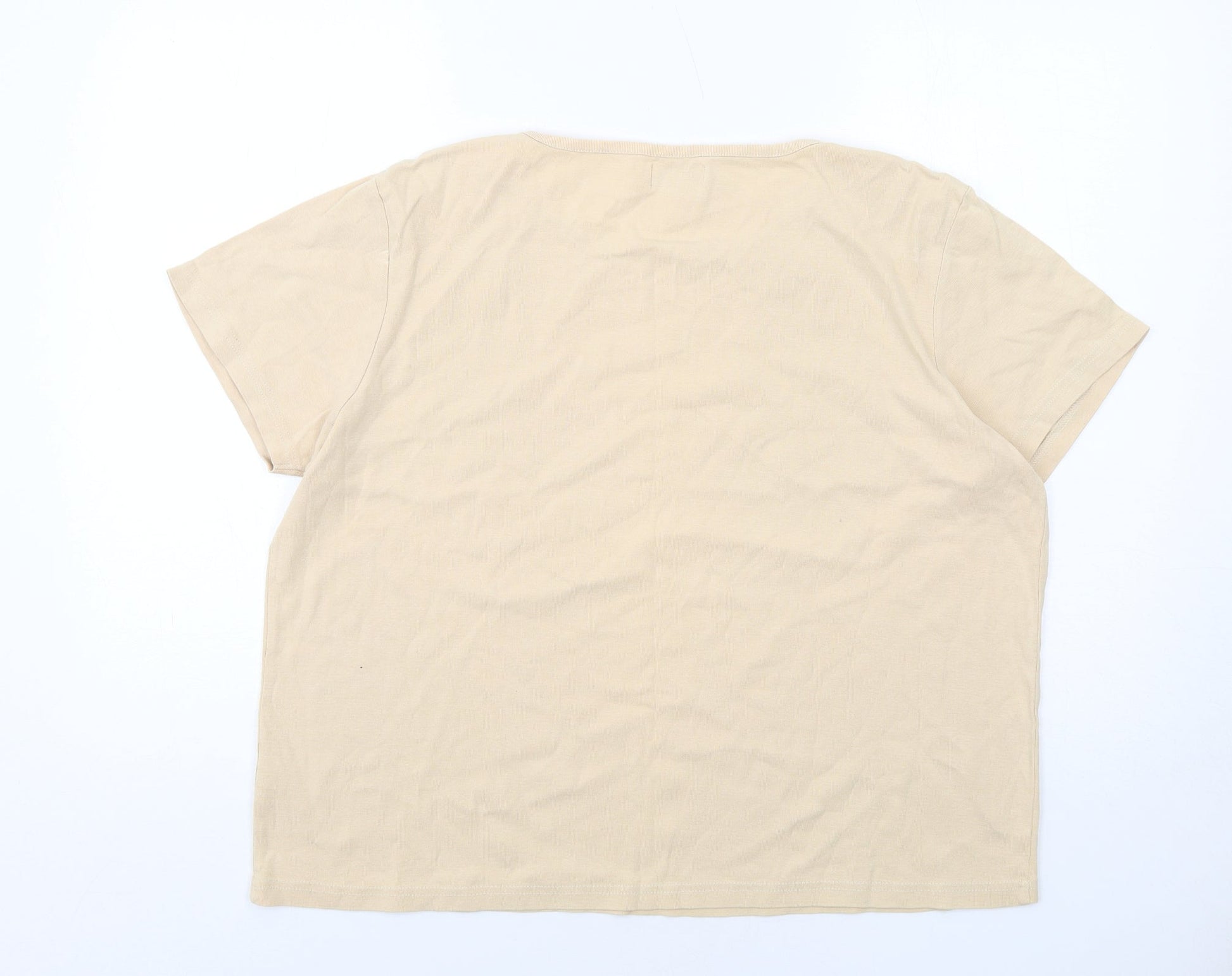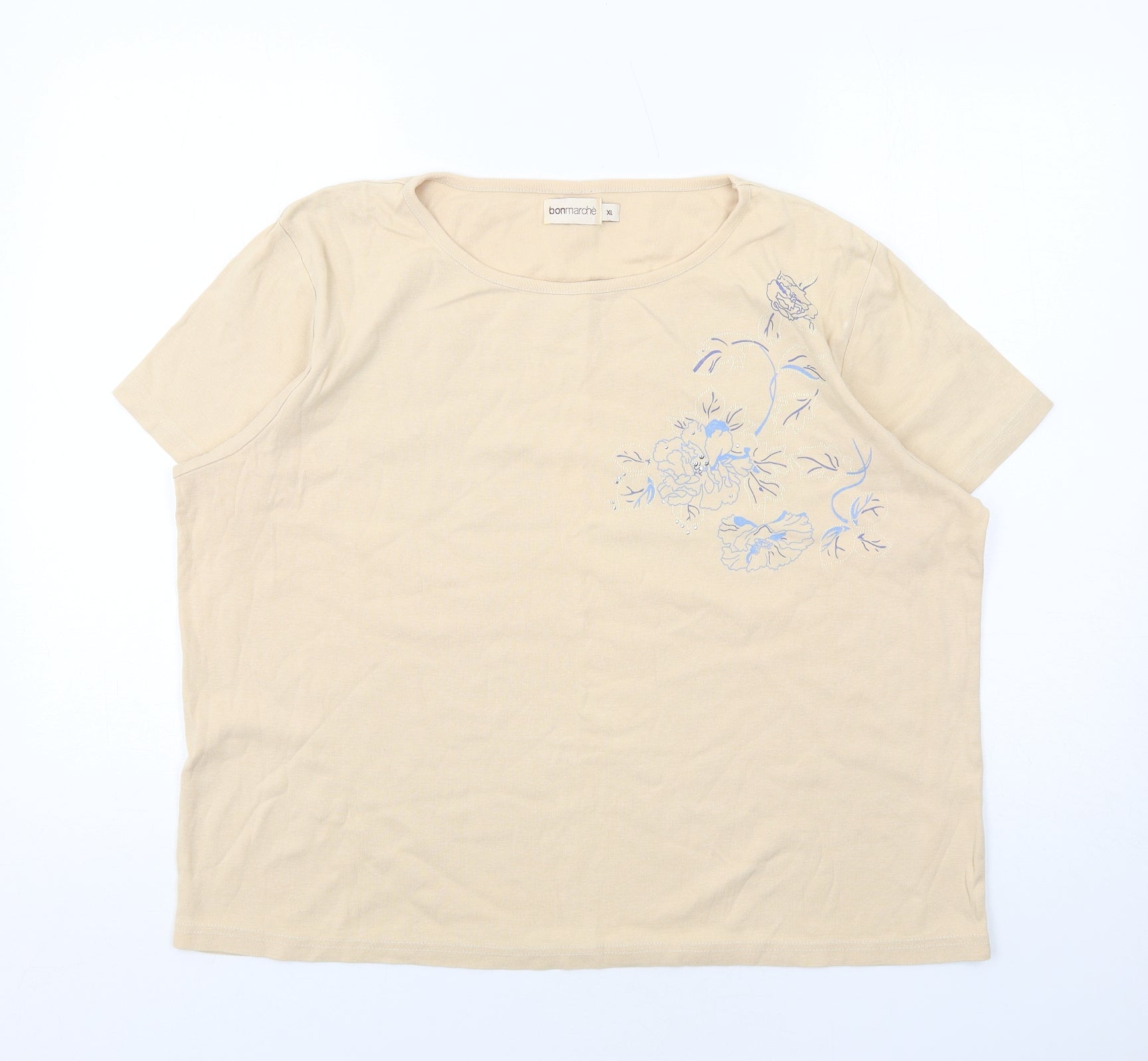 Bonmarché Womens Beige Cotton Basic T-Shirt Size XL Round Neck - Flower Detail