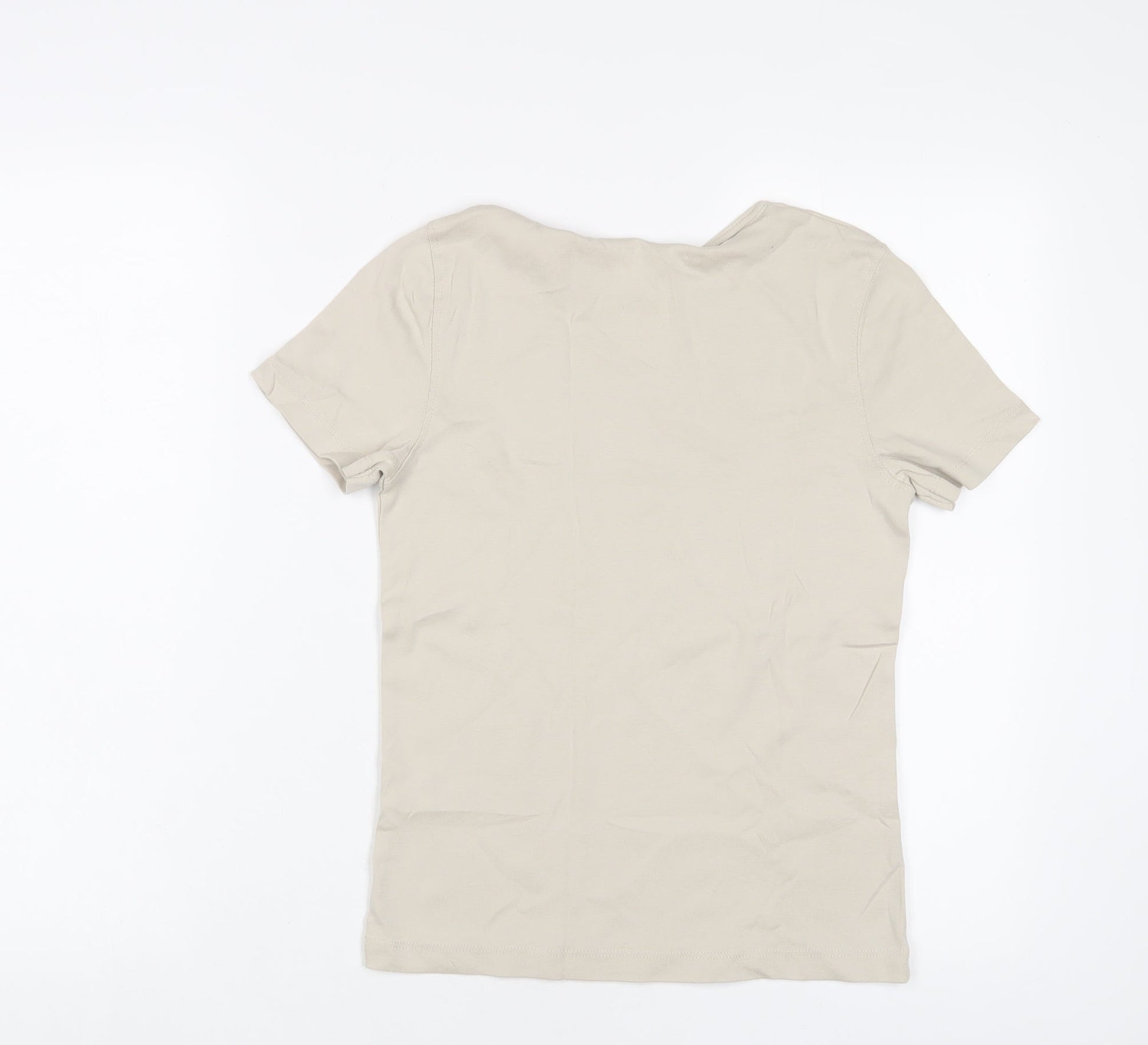 Bonmarché Womens Beige Cotton Basic T-Shirt Size XS Crew Neck