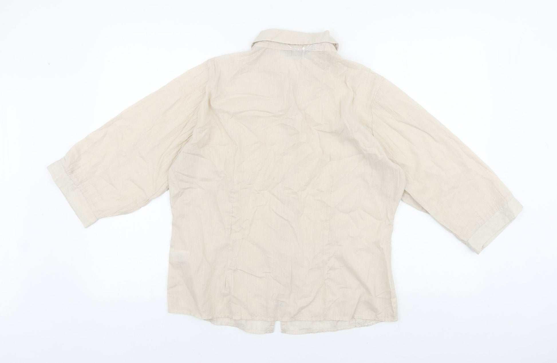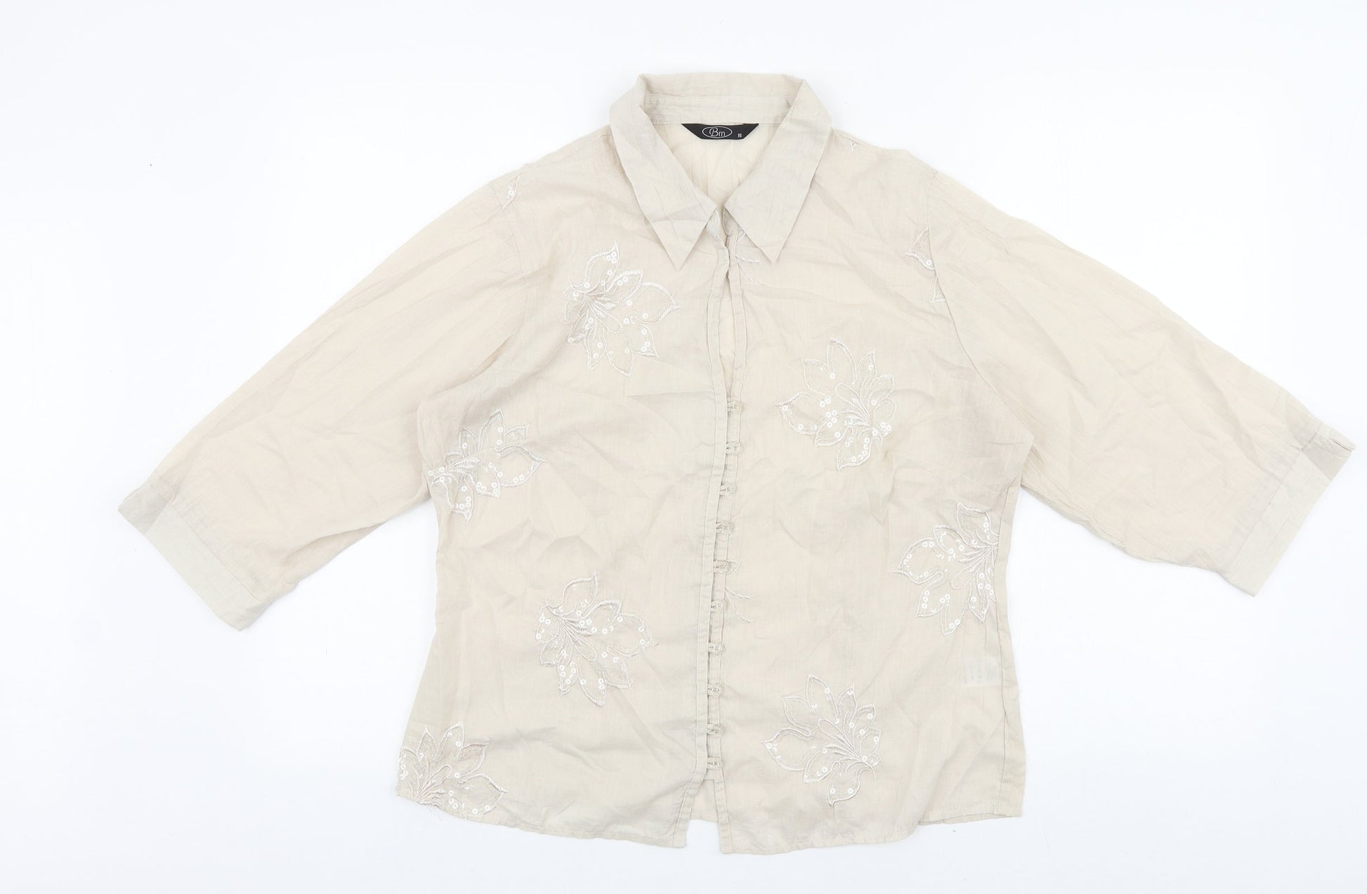 Bonmarché Womens Beige Floral 100% Cotton Basic Button-Up Size 14 Collared