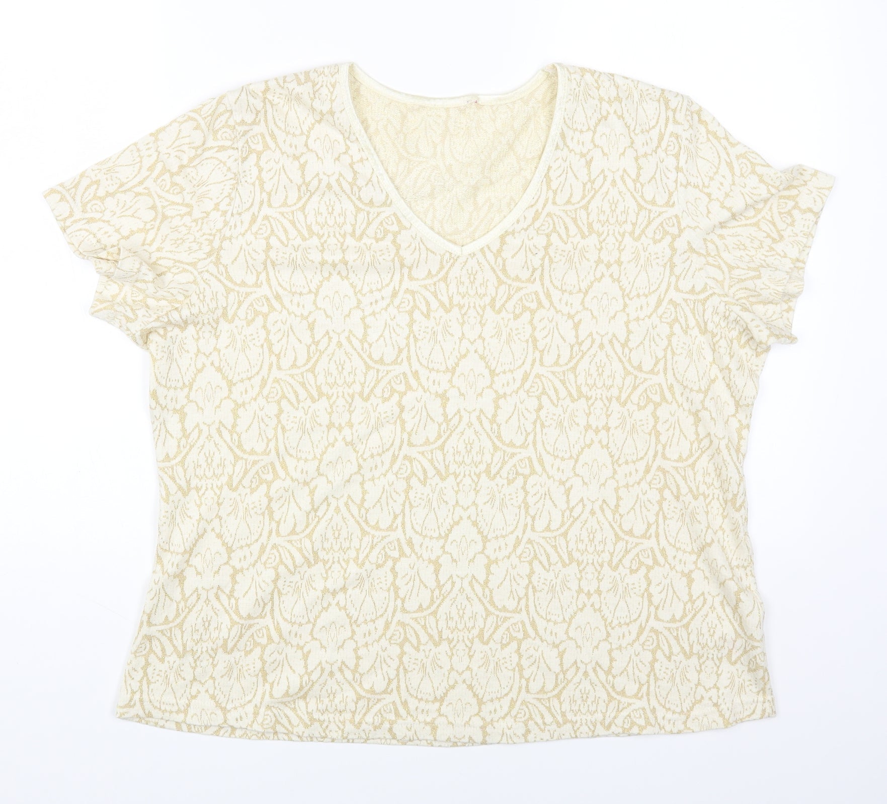 Bonmarché Womens Beige Geometric Acrylic Basic T-Shirt Size L Round Neck