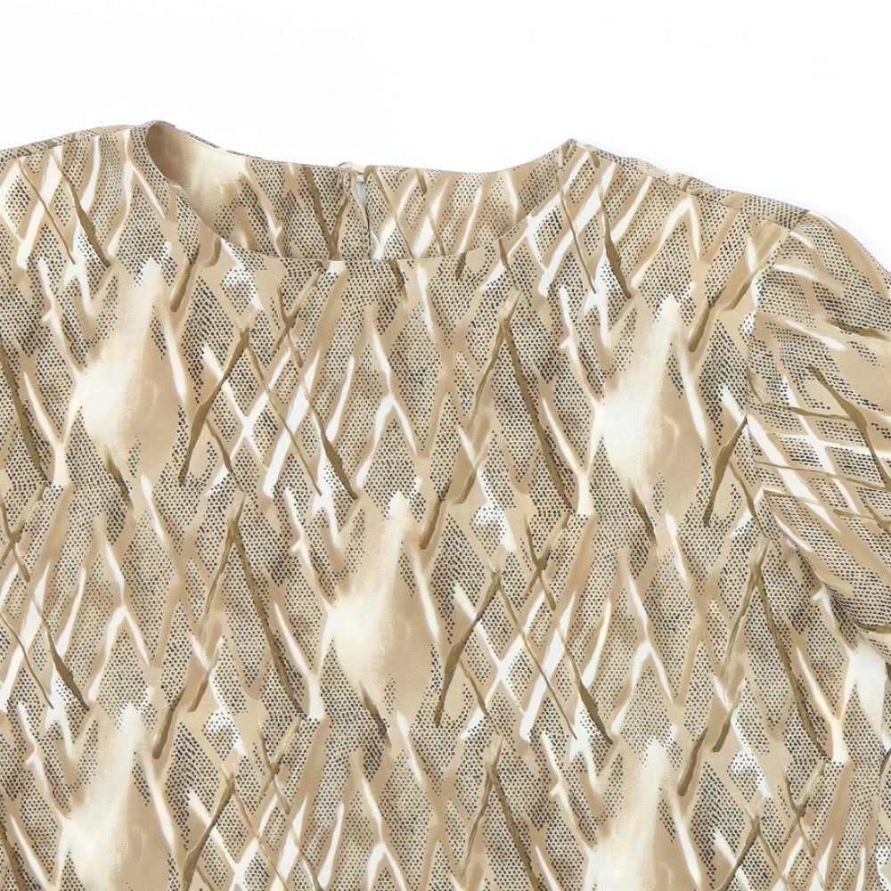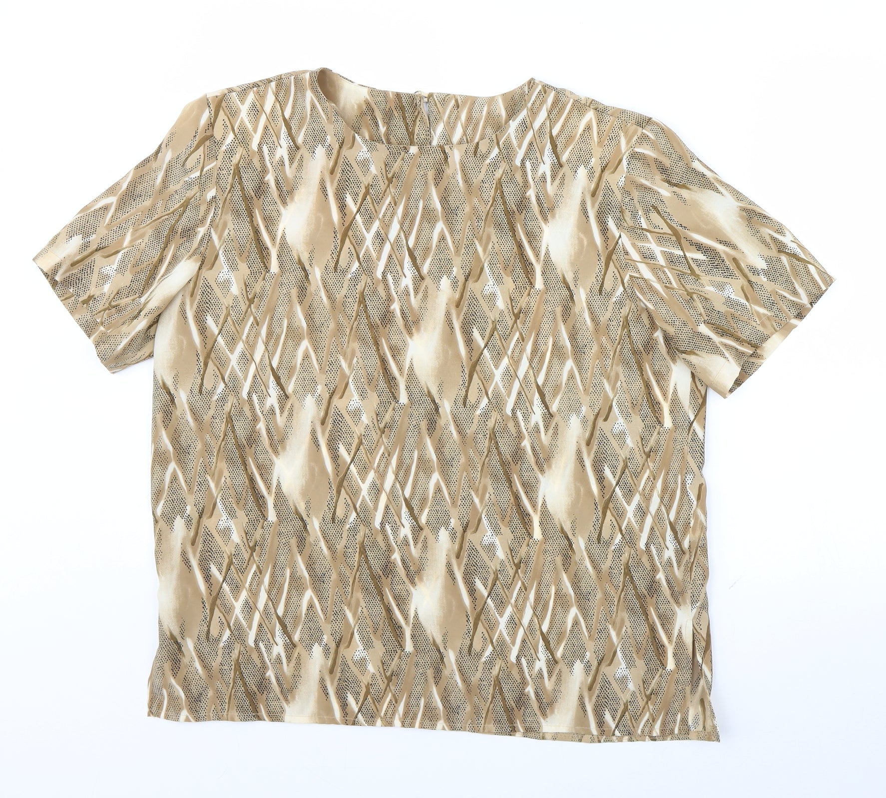 Bonmarché Womens Beige Geometric Basic Blouse Size 16 - Shoulder Pads