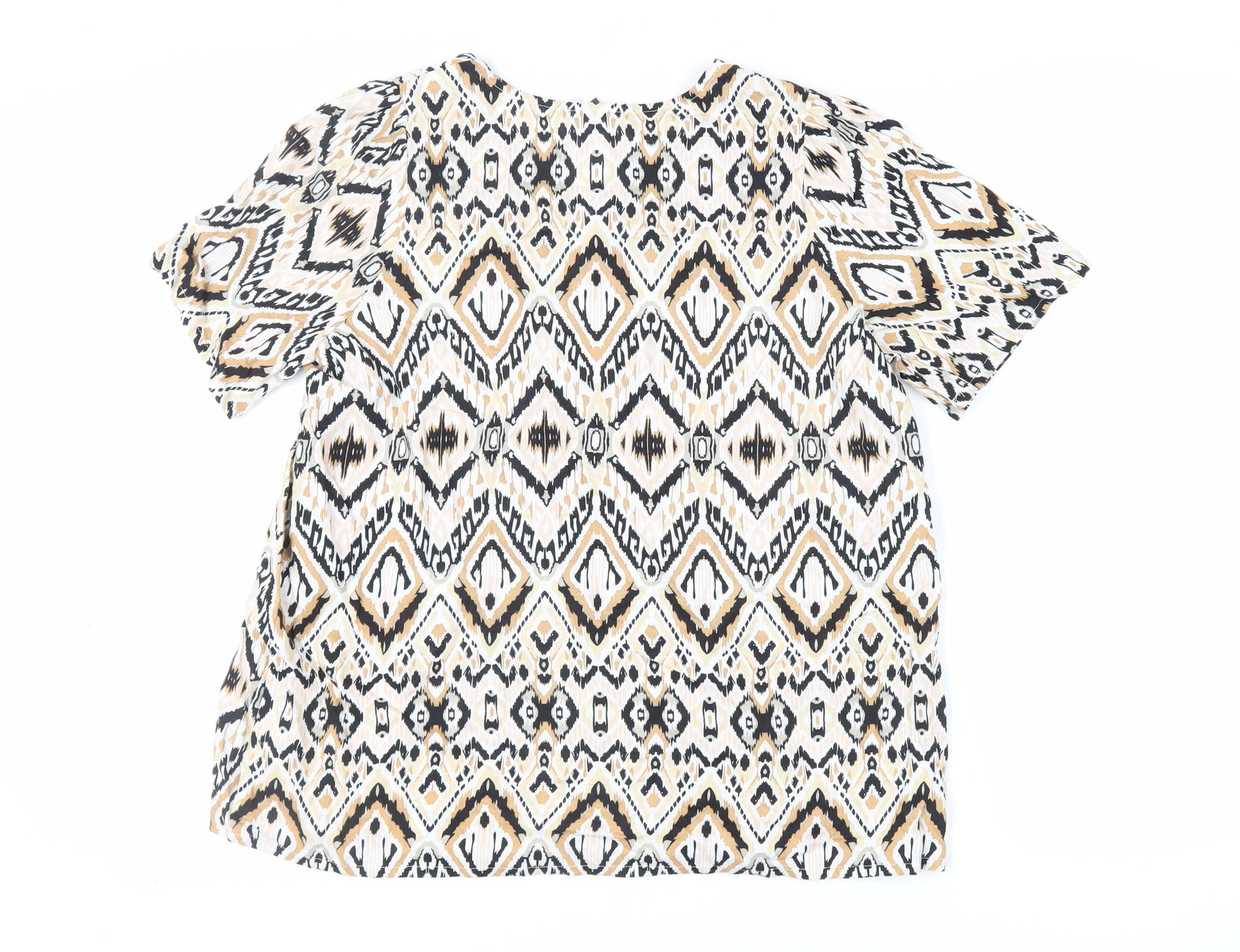 Bonmarché Womens Beige Geometric Viscose Basic Blouse Size 10 V-Neck
