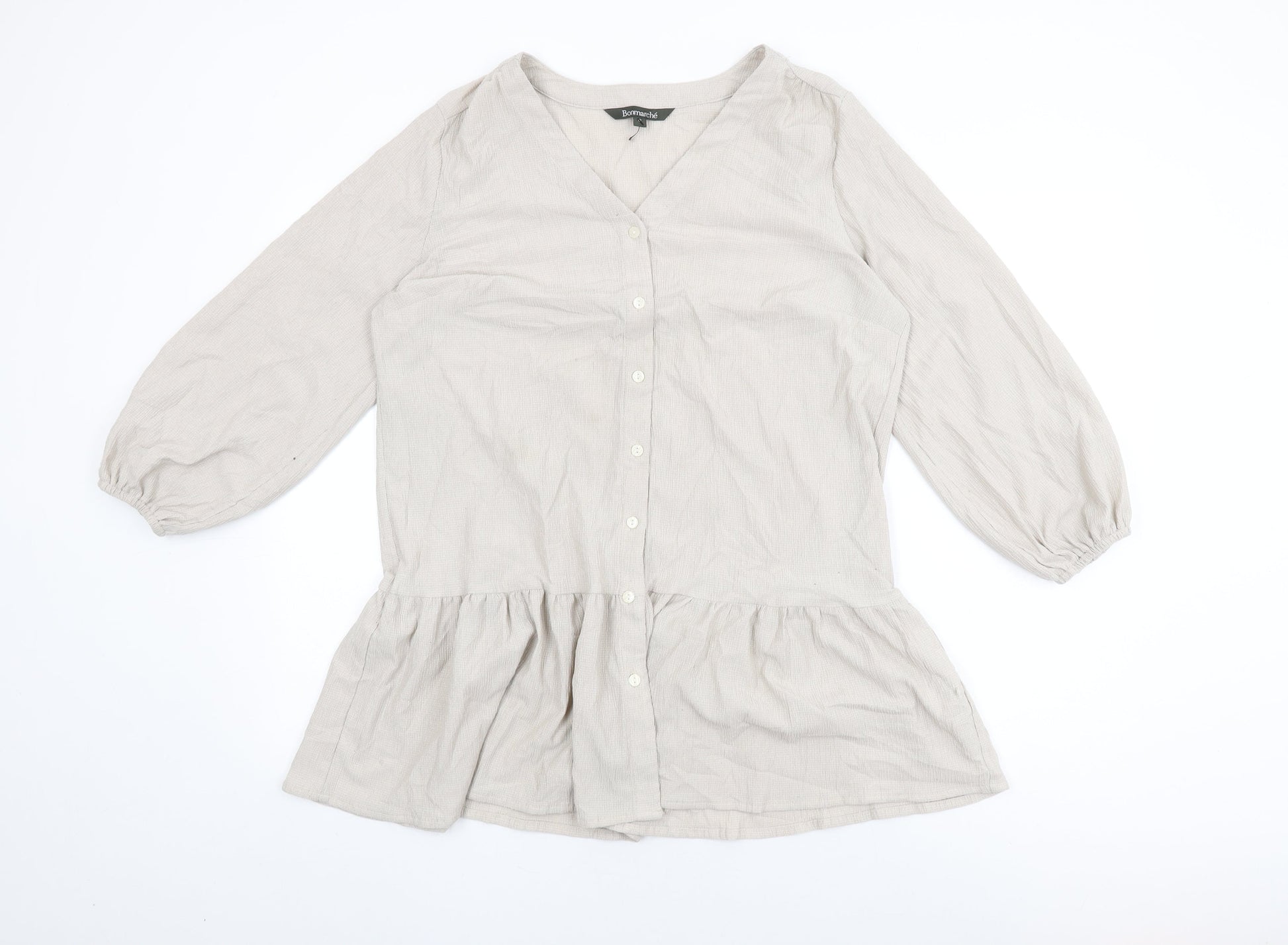 Bonmarché Womens Beige Polyester Basic Button-Up Size 12 V-Neck