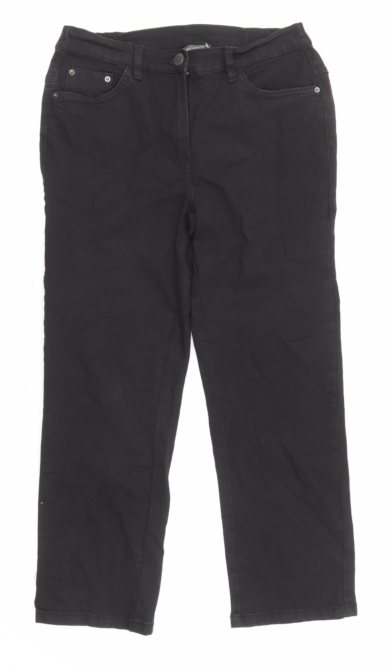 Bonmarché Womens Black Cotton Straight Jeans Size 12 L23 in Regular Zip