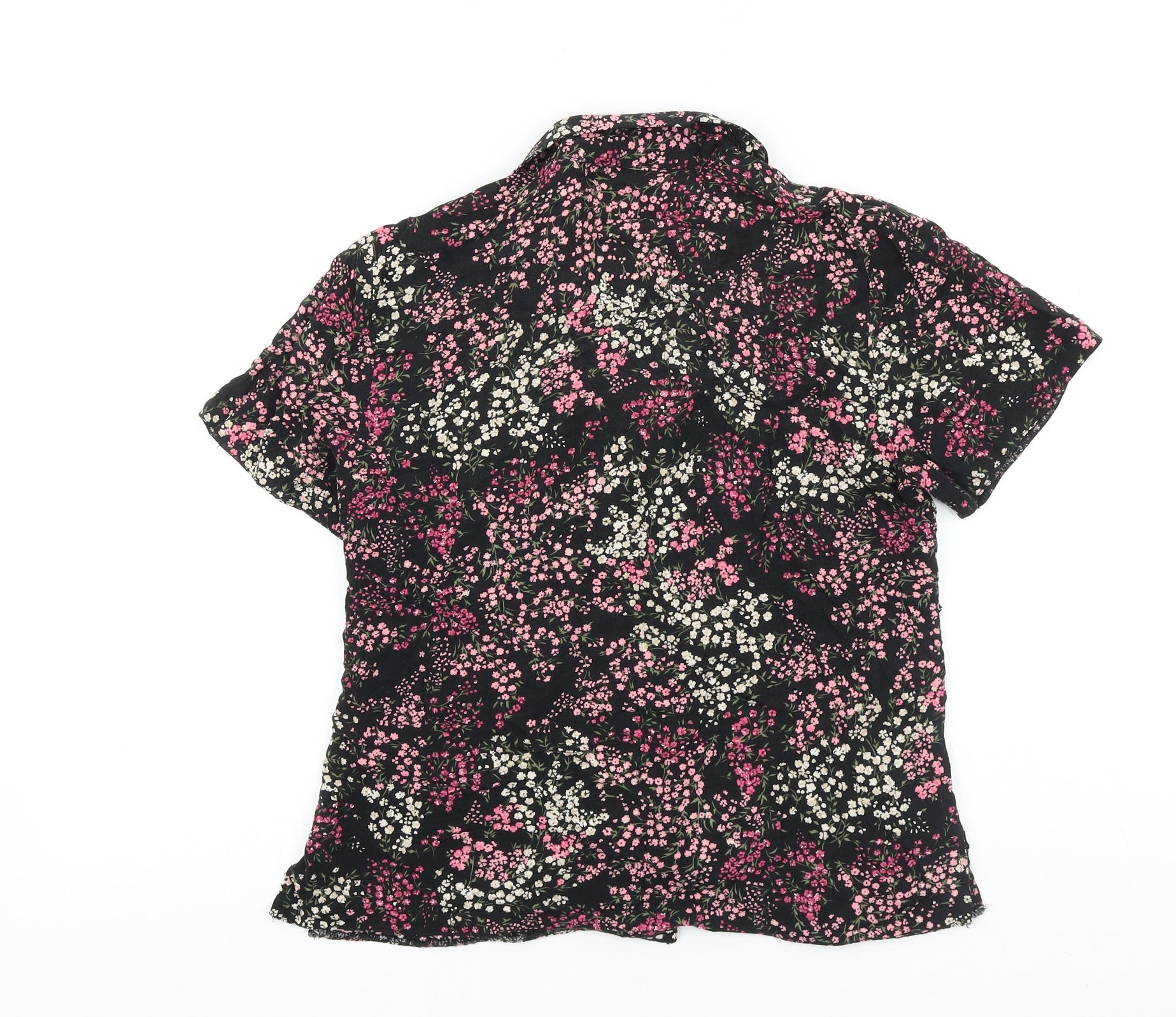 Bonmarché Womens Black Floral Viscose Basic Button-Up Size 12 Collared