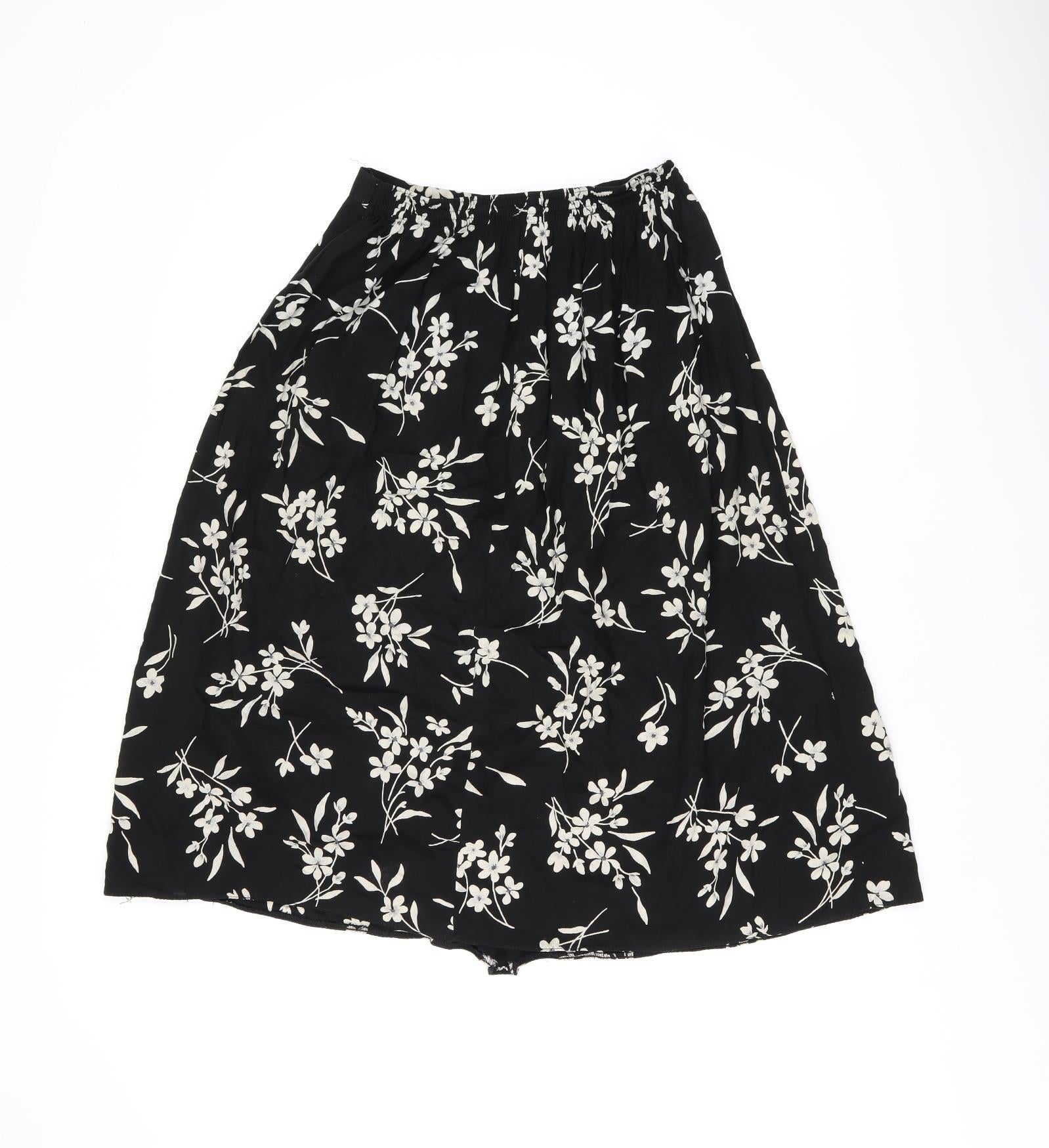 Bonmarché Womens Black Floral Viscose Swing Skirt Size 14