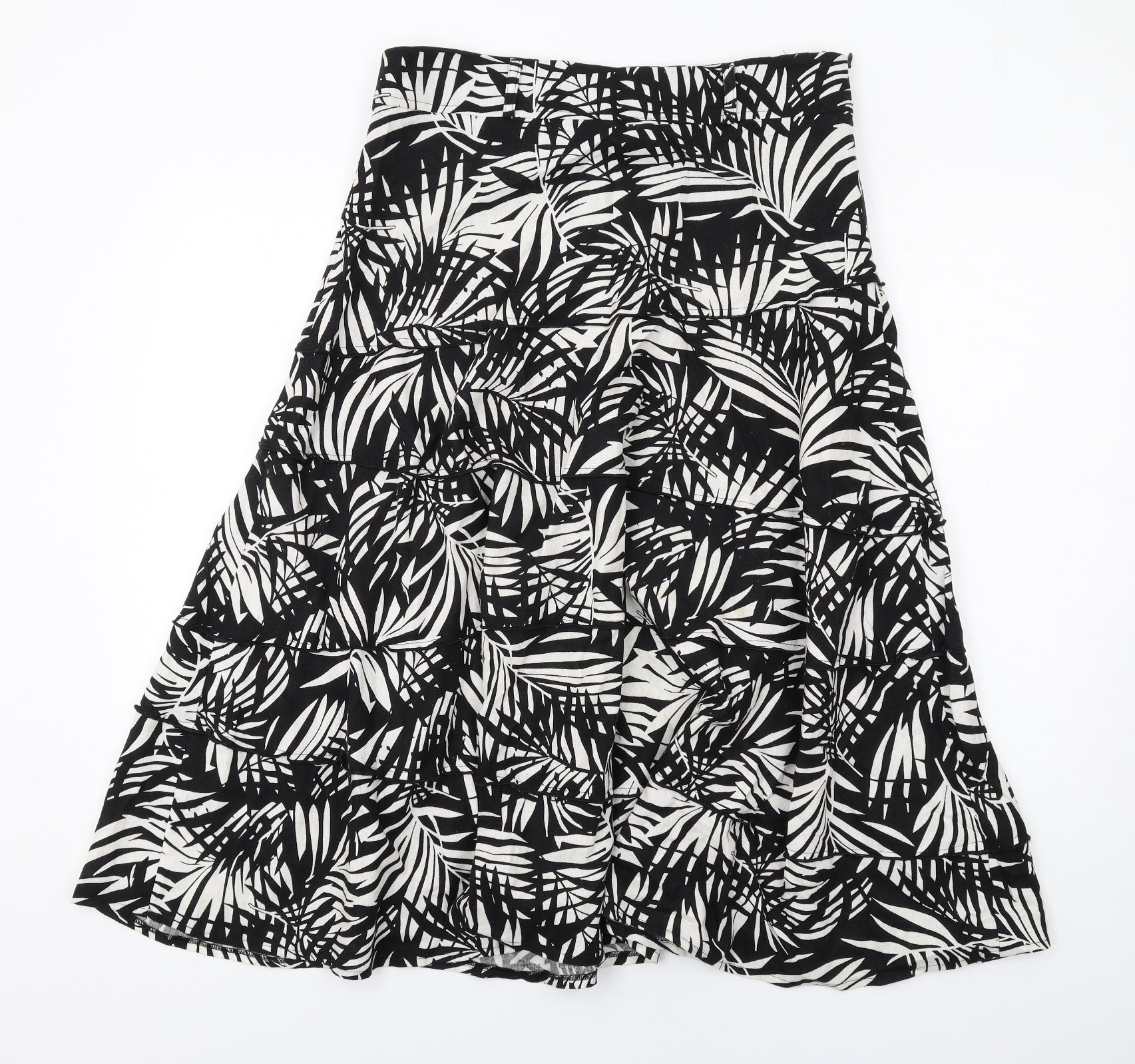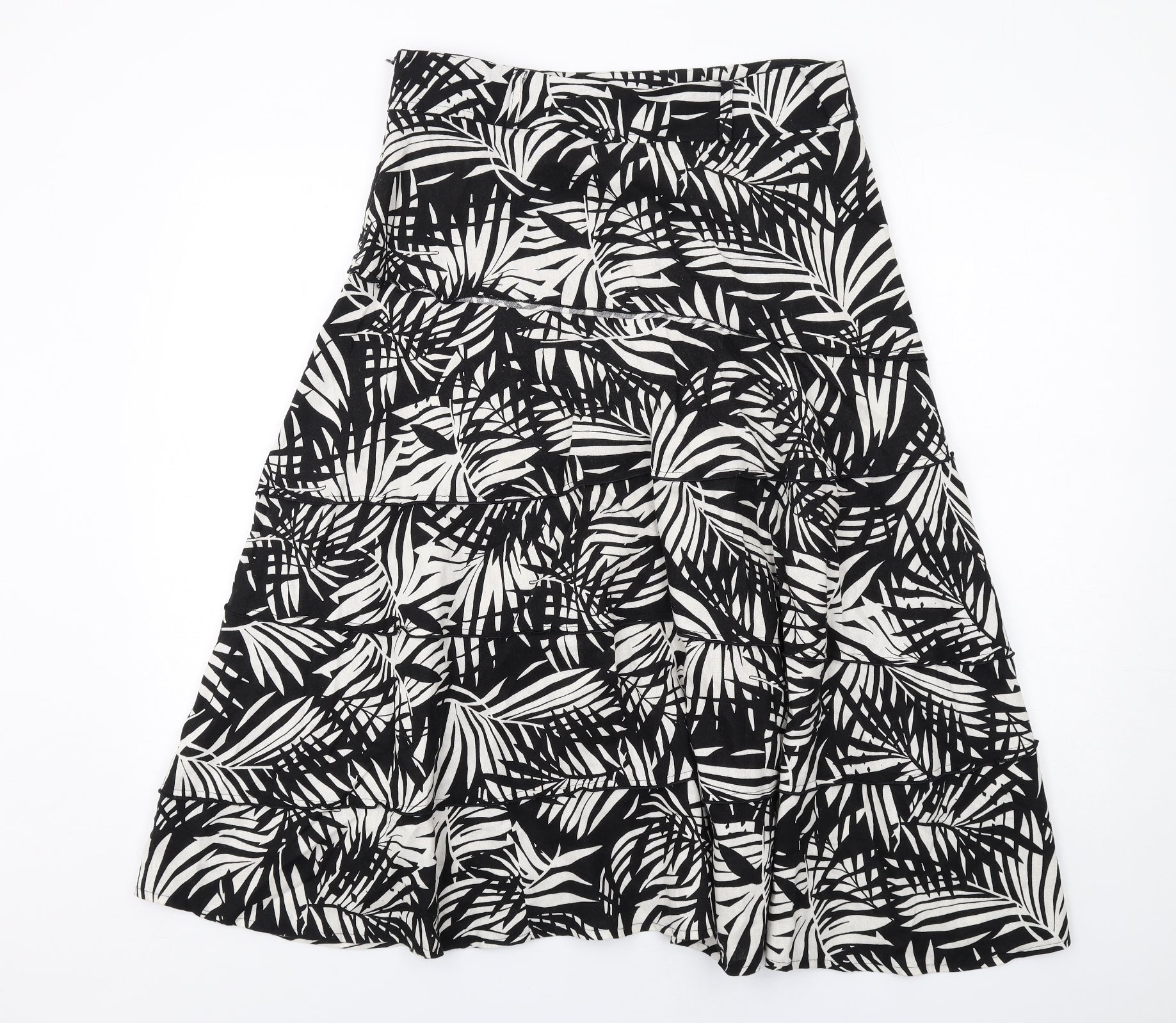 Bonmarché Womens Black Geometric Linen Swing Skirt Size 12 Zip - Leaf pattern