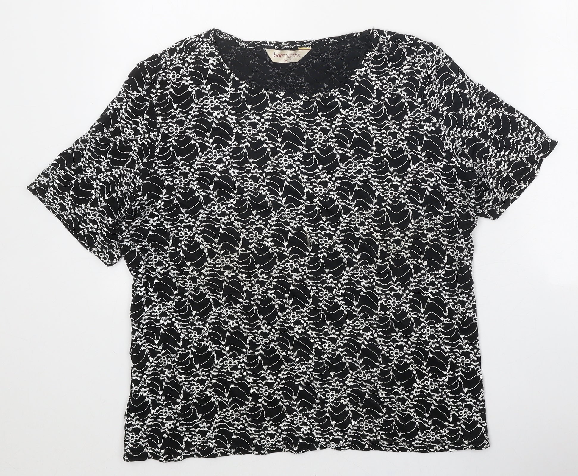 Bonmarché Womens Black Geometric Nylon Basic T-Shirt Size M Round Neck