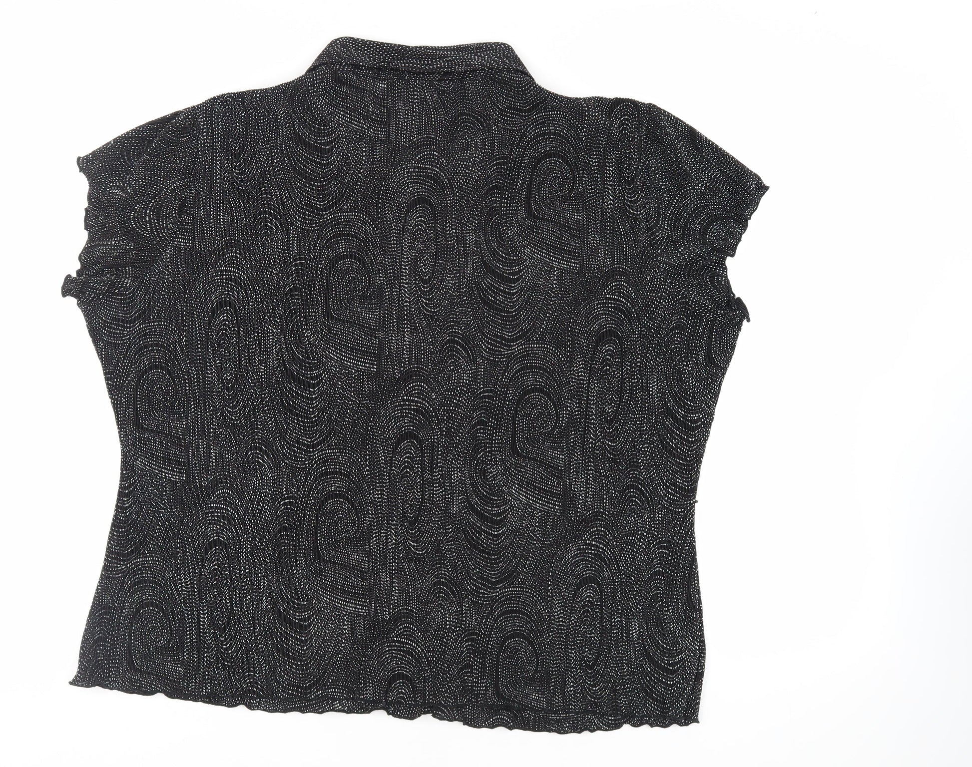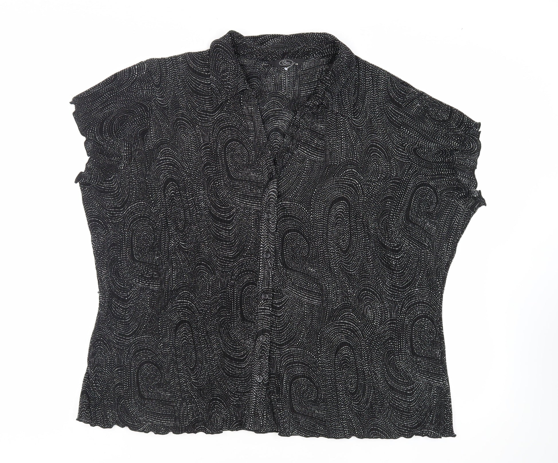 Bonmarché Womens Black Geometric Polyester Basic Button-Up Size 24 Collared