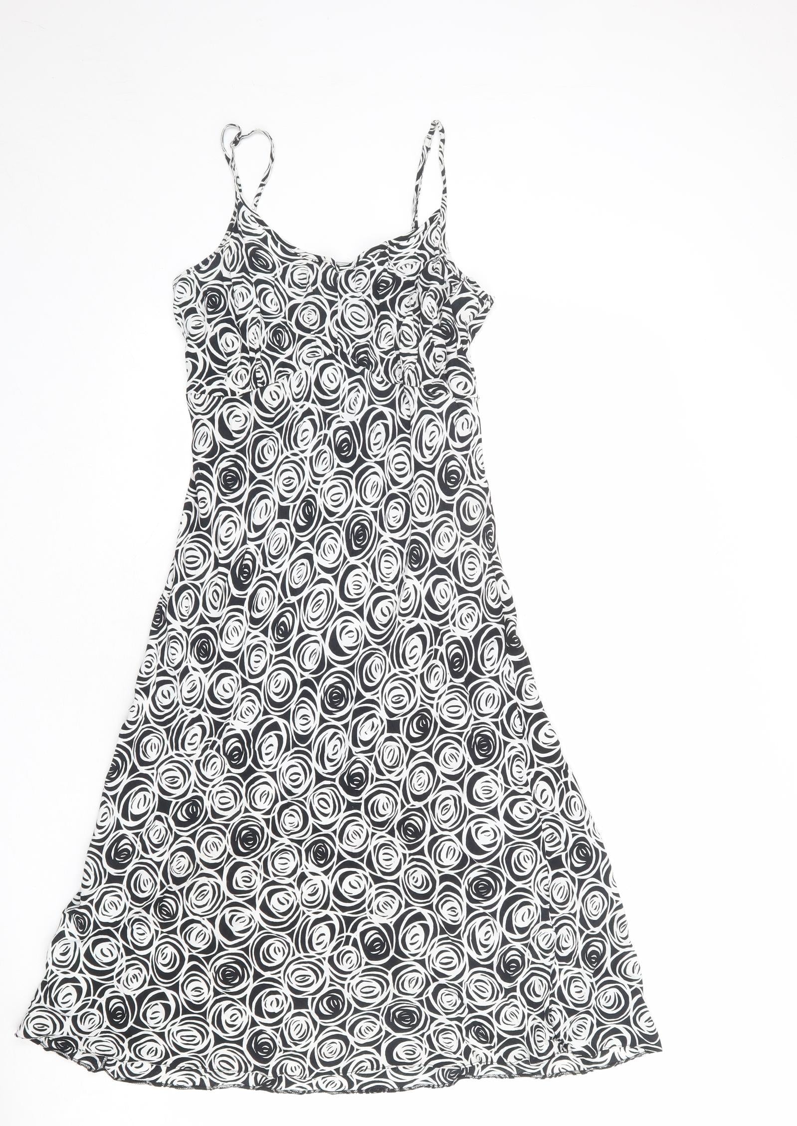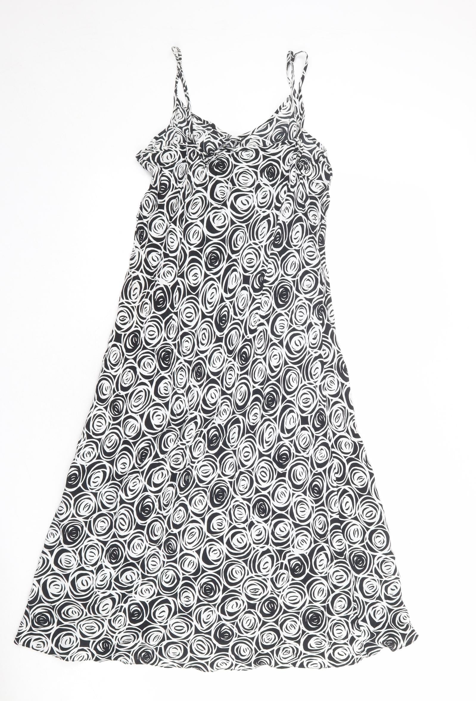 Bonmarché Womens Black Geometric Viscose A-Line Size 12 Round Neck Pullover