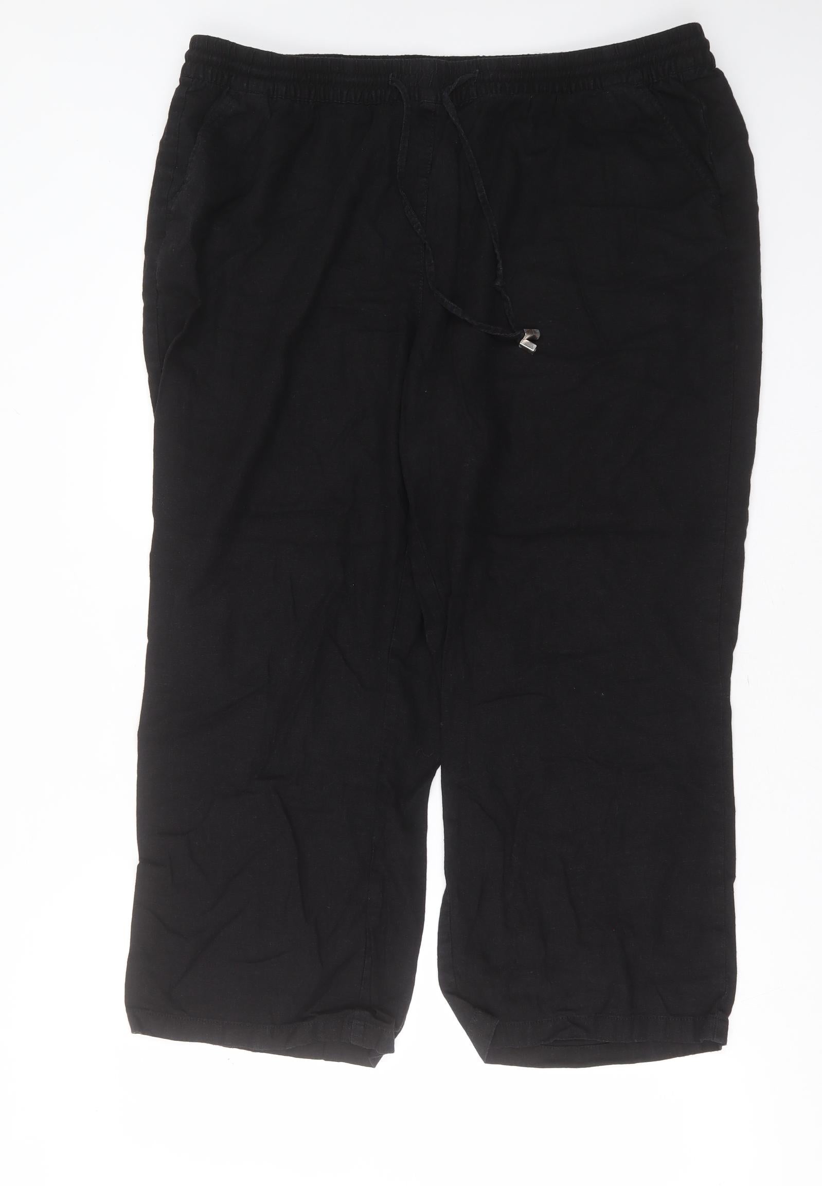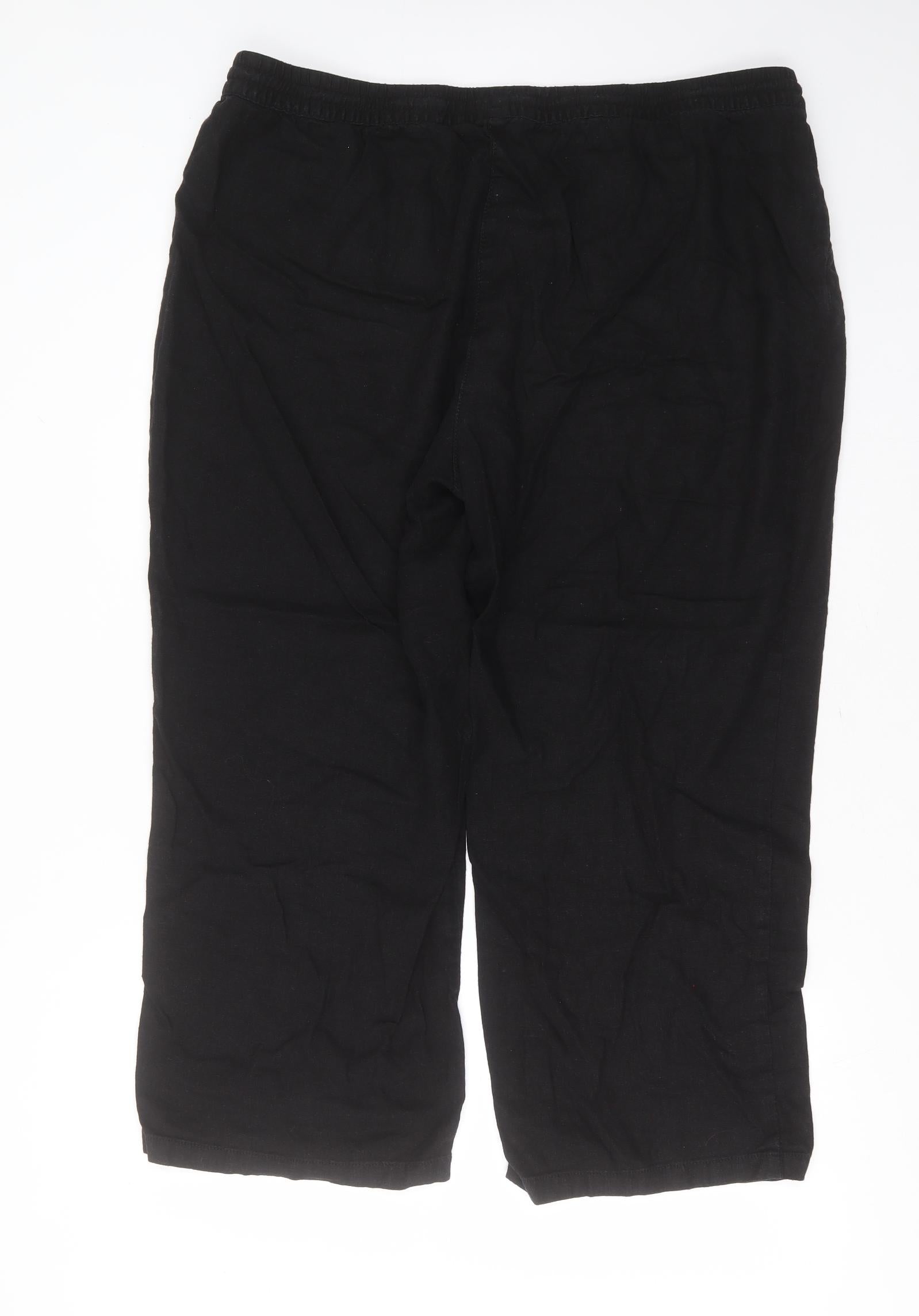 Bonmarché Womens Black Linen Trousers Size 20 L25 in Regular Drawstring