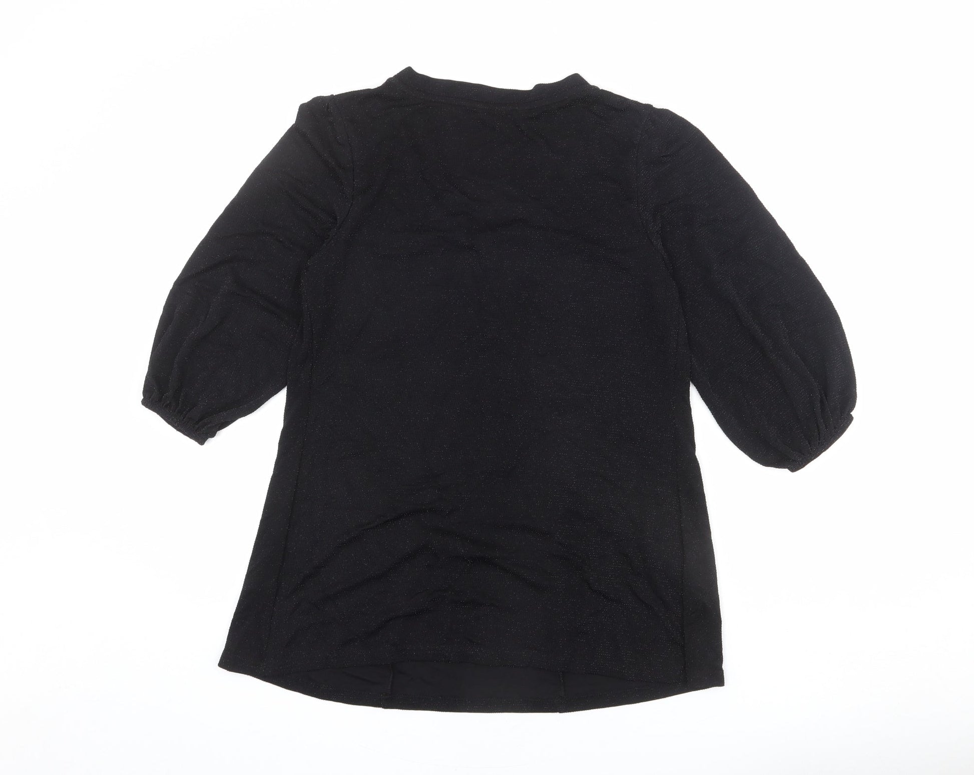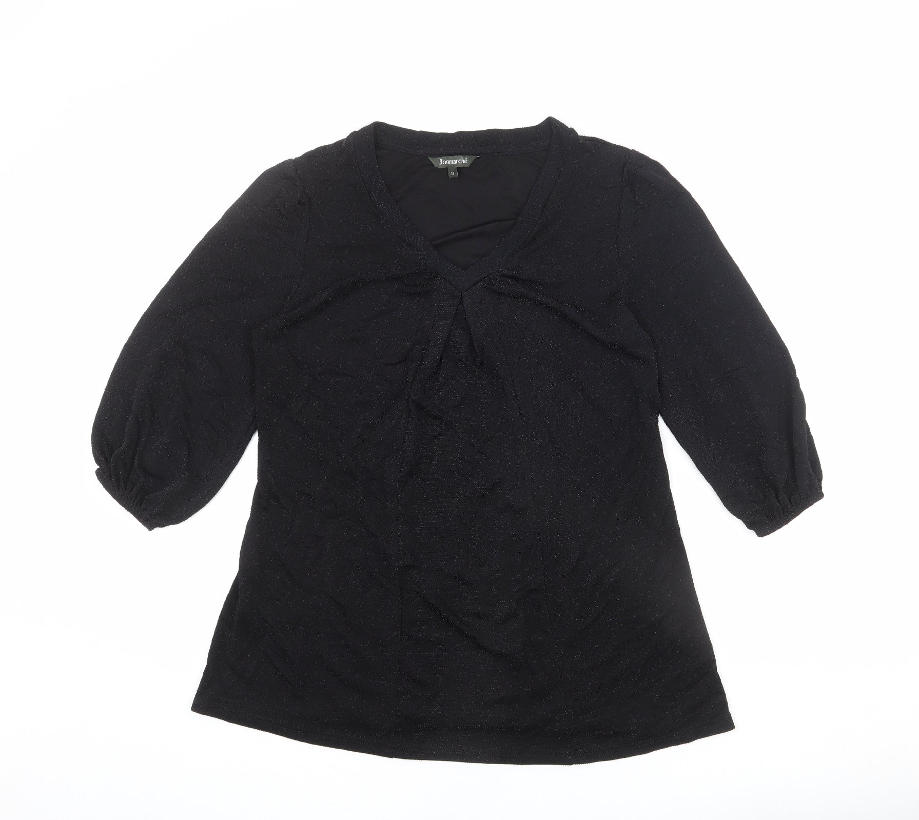 Bonmarché Womens Black Nylon Basic Blouse Size 12 V-Neck
