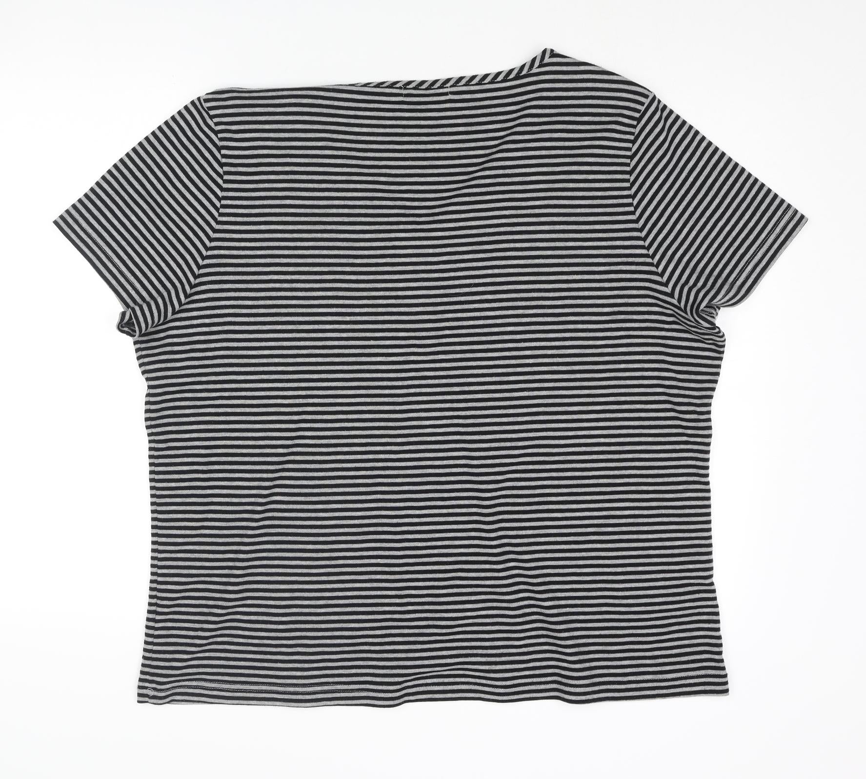 Bonmarché Womens Black Striped Polyester Basic Blouse Size XL V-Neck - Floral Applique Embroidery