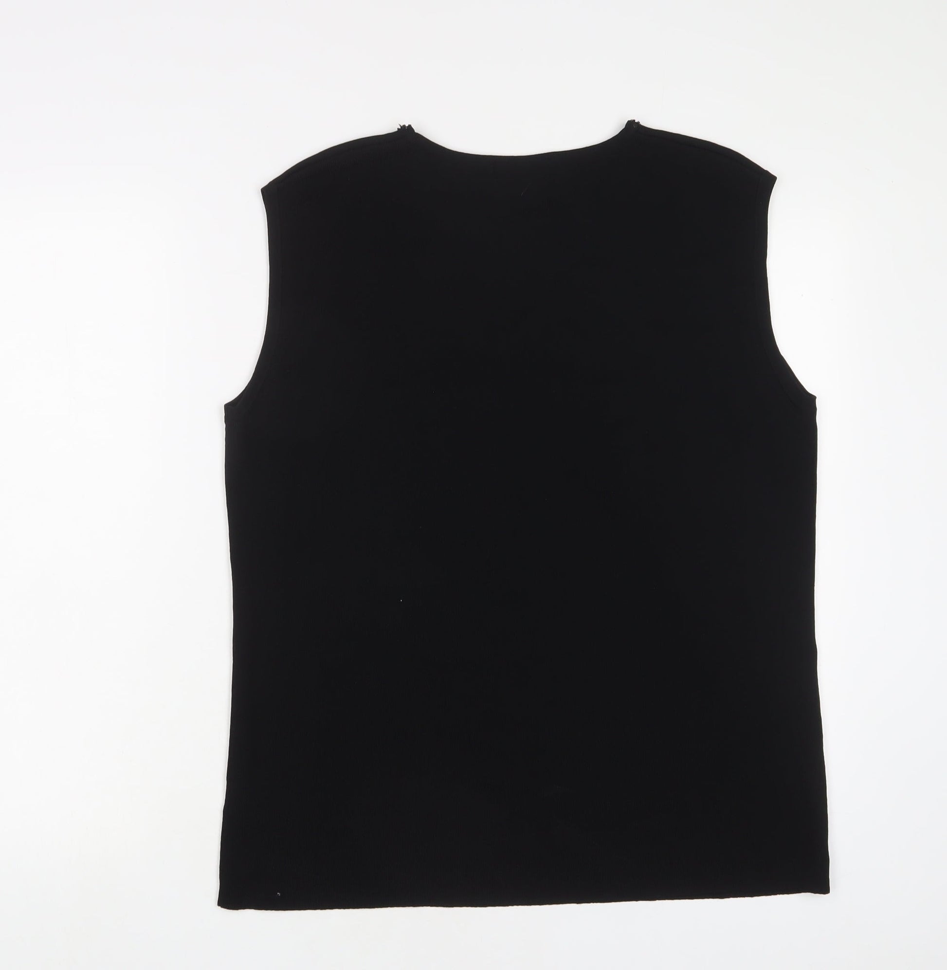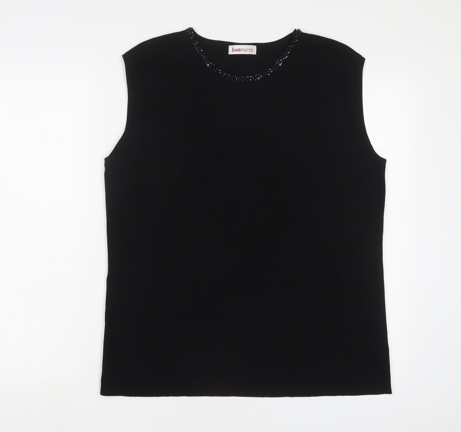 Bonmarché Womens Black Viscose Basic Tank Size L Crew Neck - Jewels
