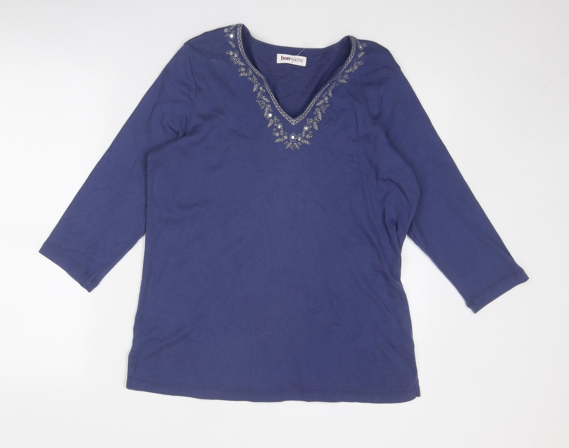Bonmarché Womens Blue Cotton Basic Blouse Size M V-Neck
