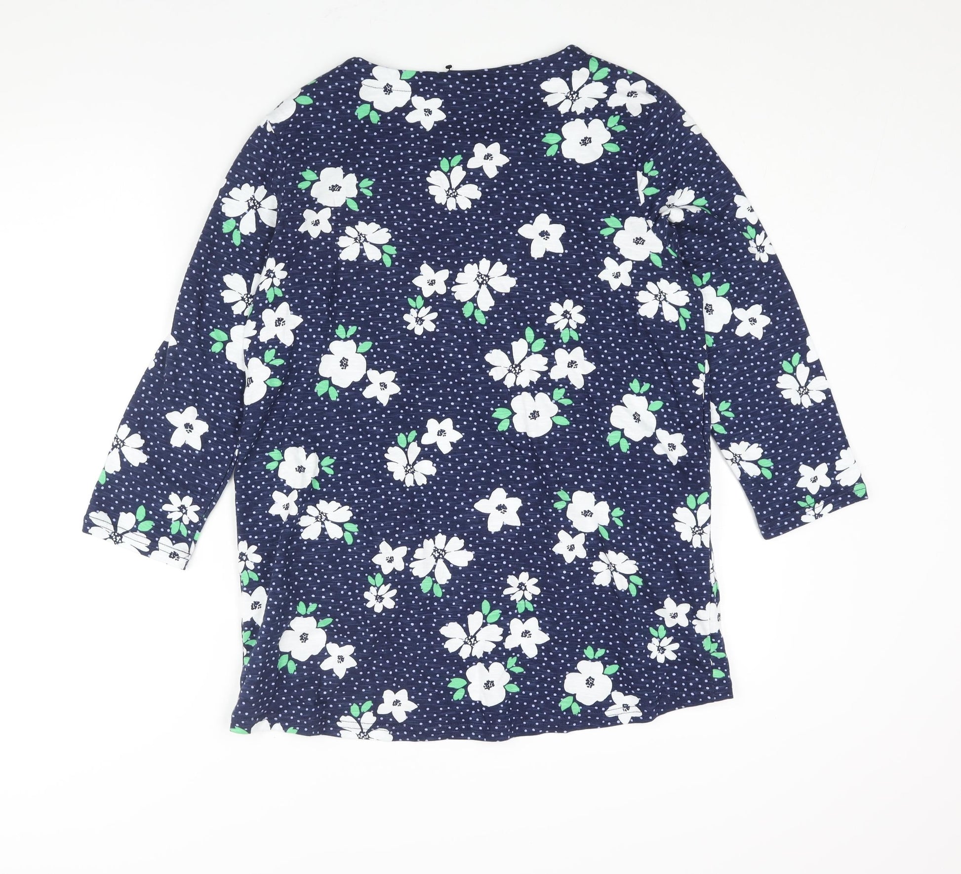 Bonmarché Womens Blue Floral Cotton Basic Blouse Size 10 Round Neck
